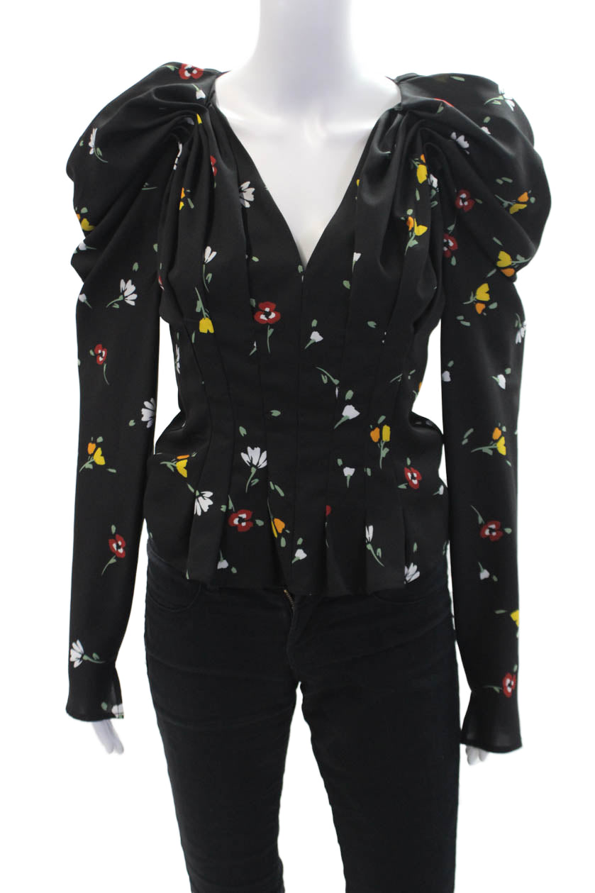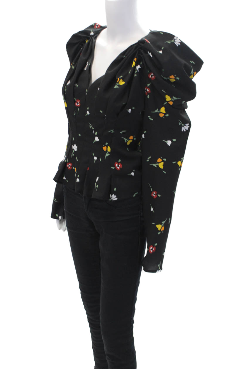 C/MEO Collective Women's V-Neck Long Sleeves Zip Floral Blouse Size S