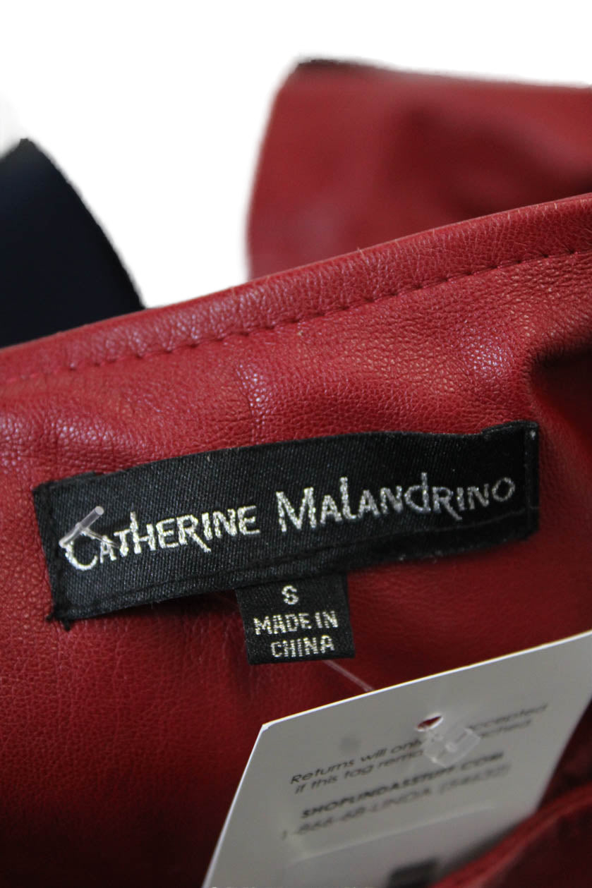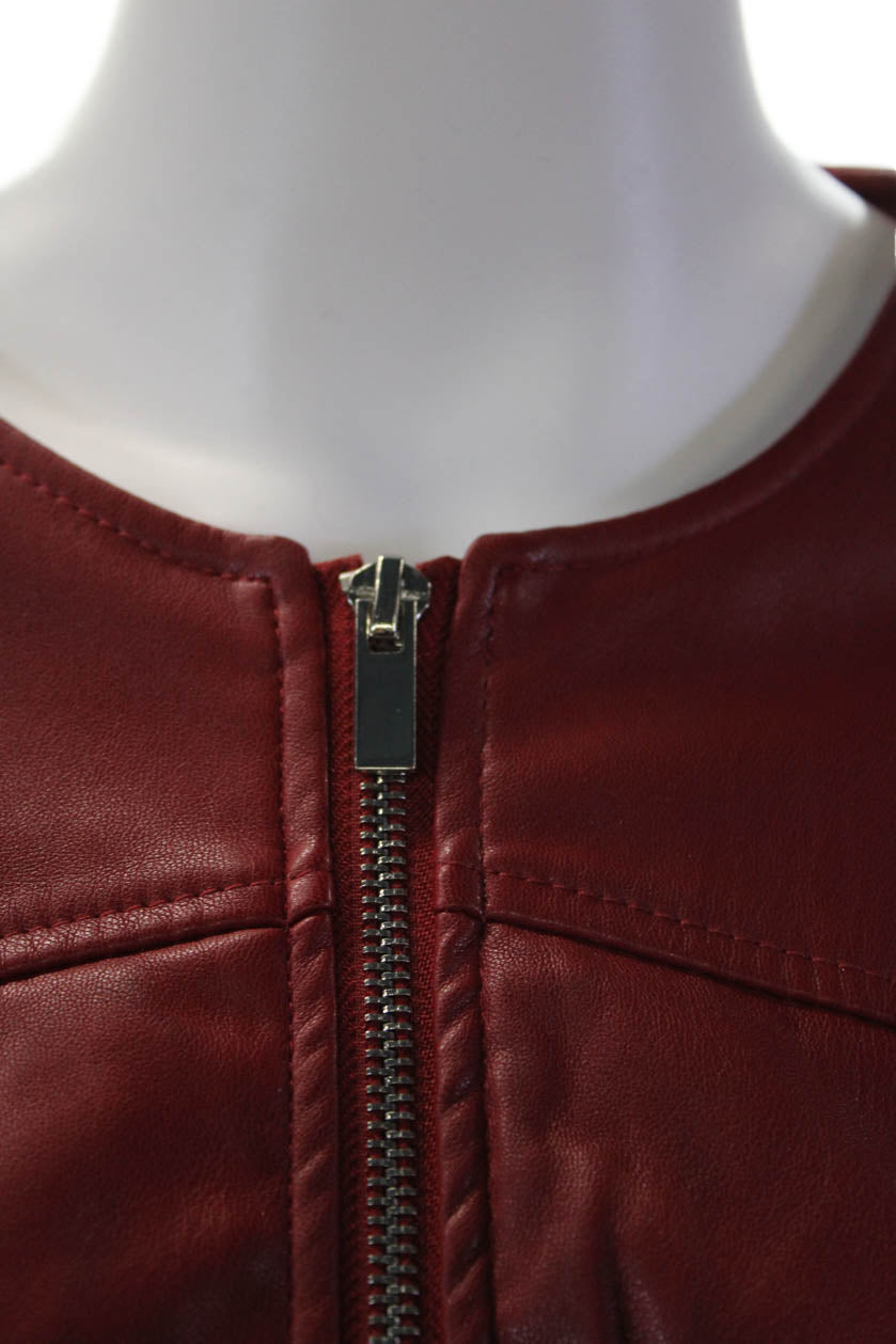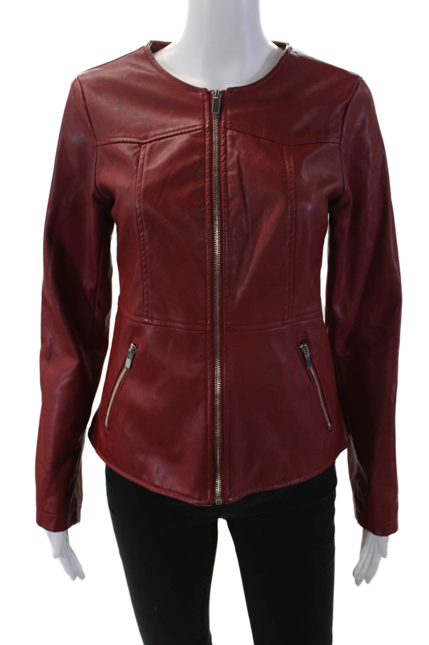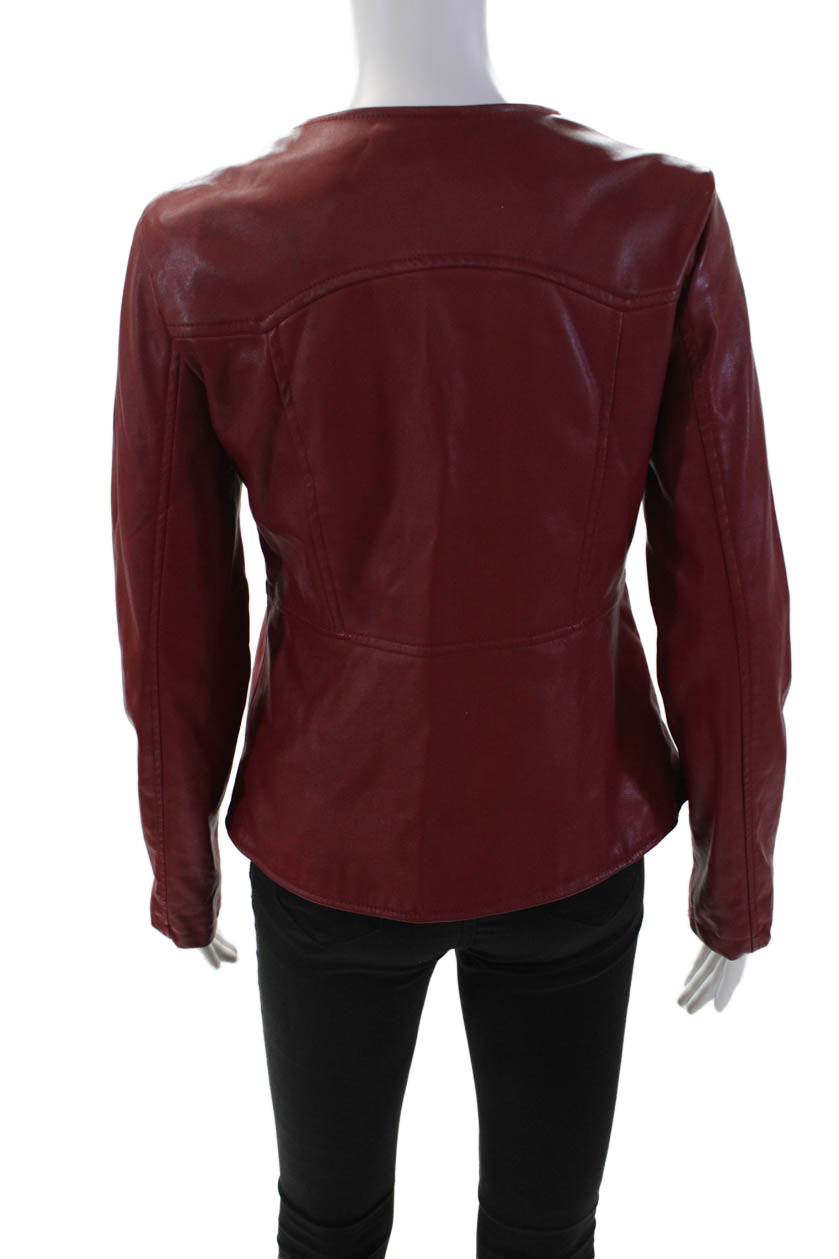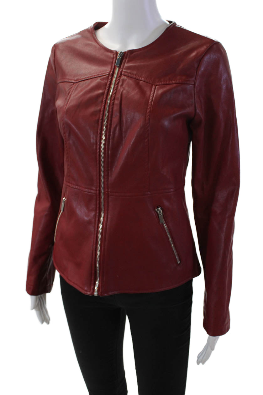 Catherine Malandrino Women's Faux Lether Long Sleeves Full Zip Jacket Red Size S
