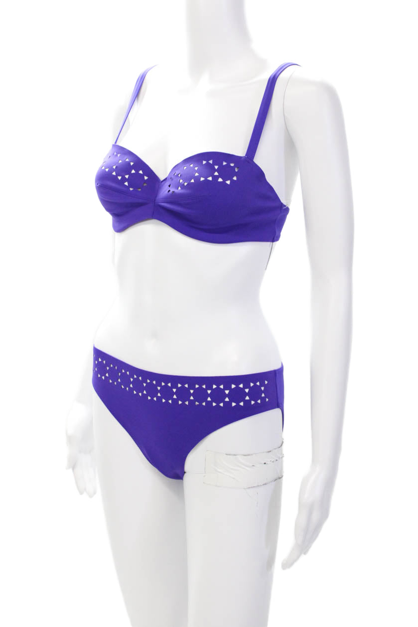 Chantelle Womens Cut Out Adjustable Two Piece Bathing Suit Purple Size 32 S