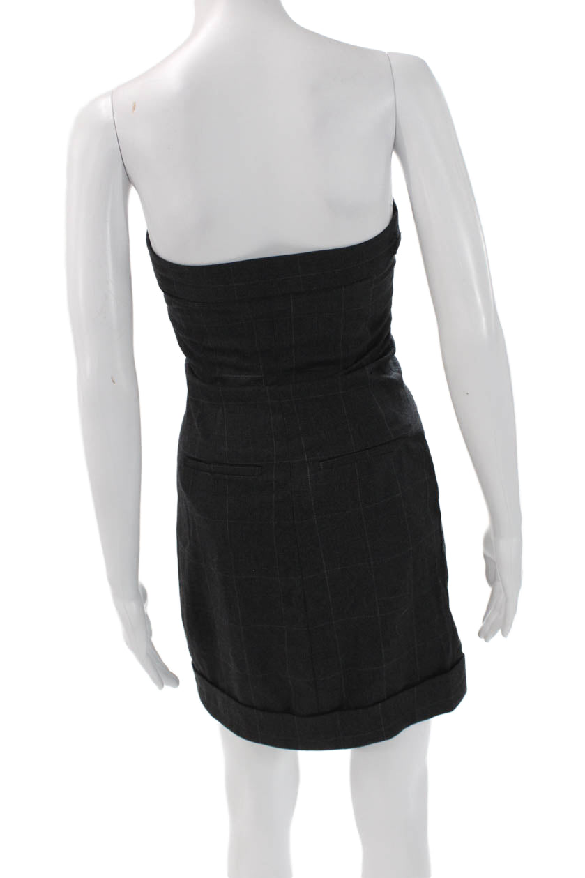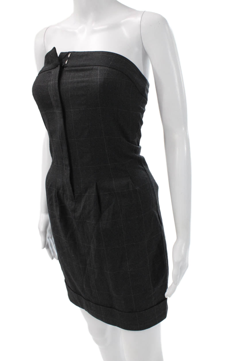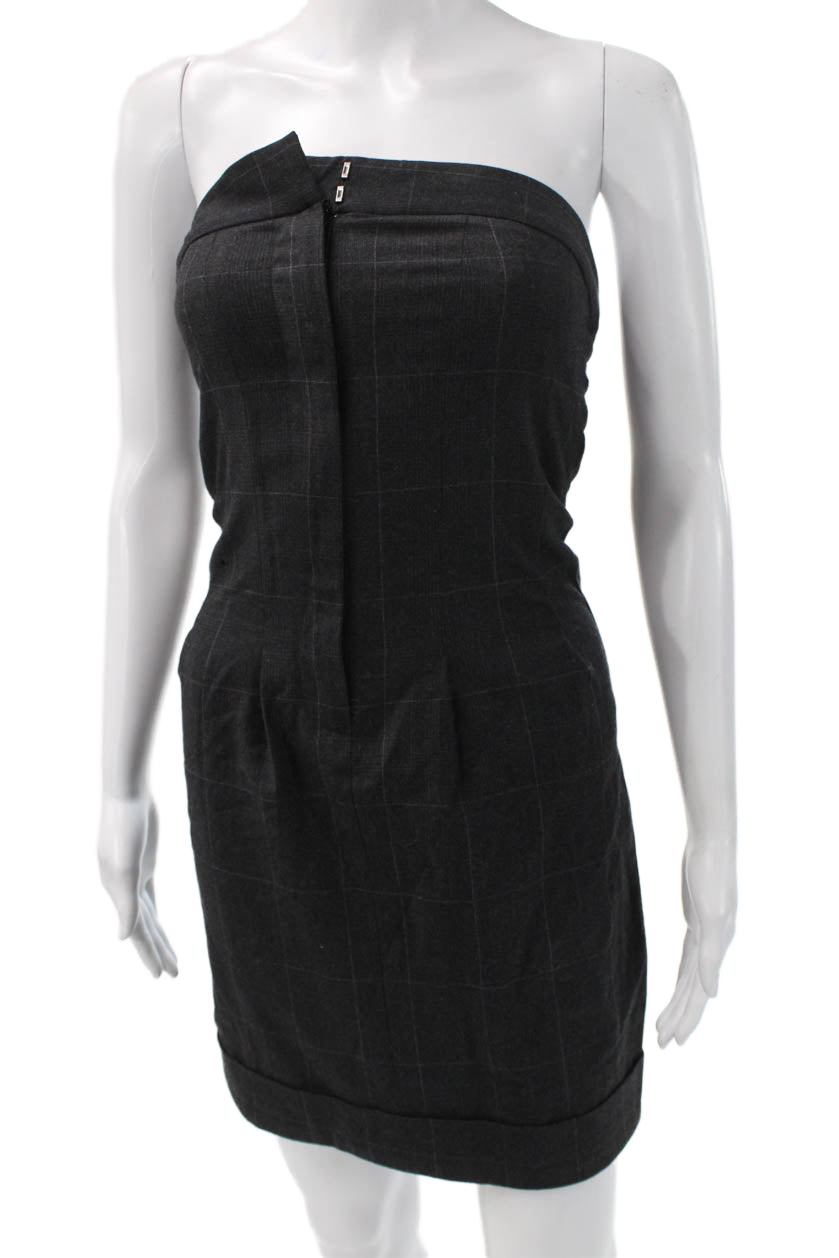 Club Monaco Women Dark Gray Wool Check Mini Sheath Dress Hook Eye Size 0