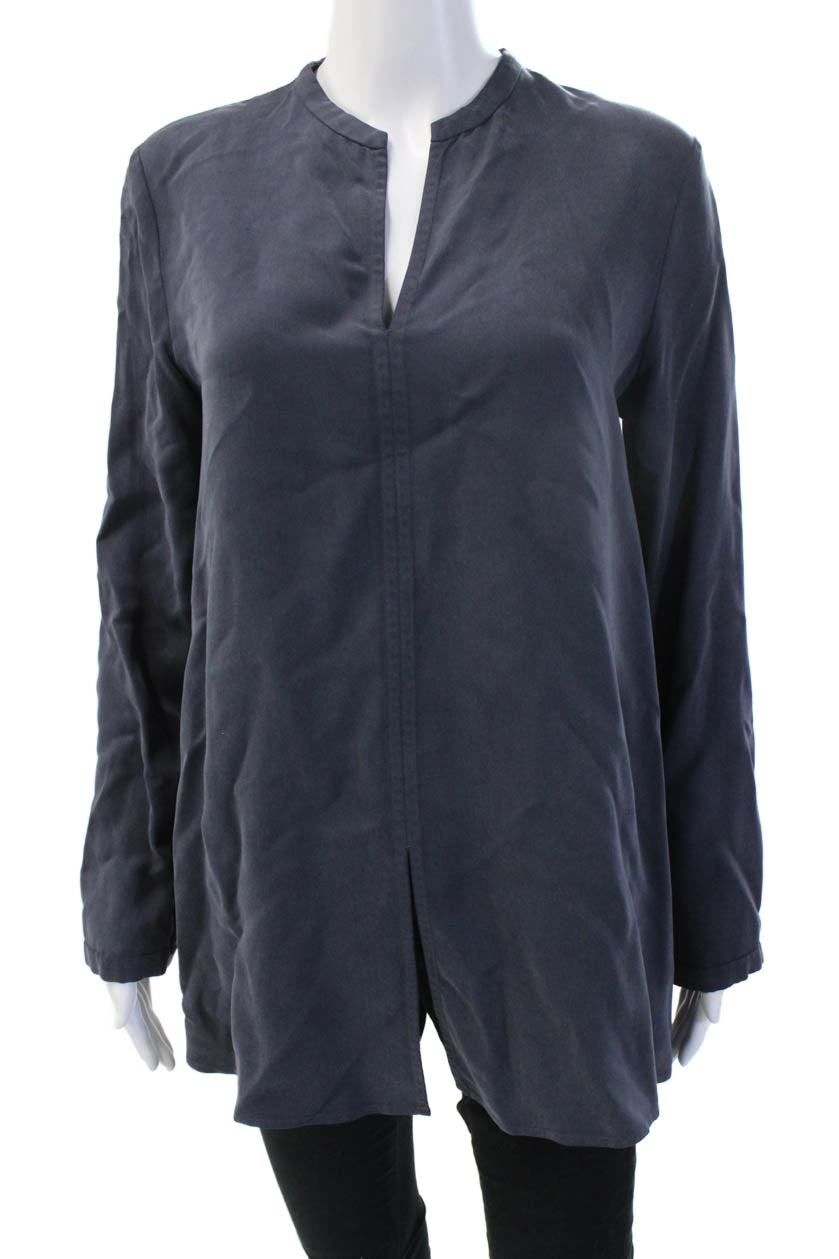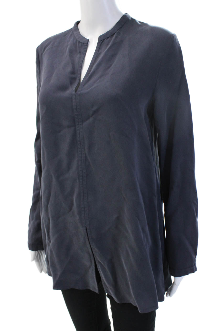 COS Womens Tunic Blouse Dark Blue Long Sleeve Modal Cupro Size 6