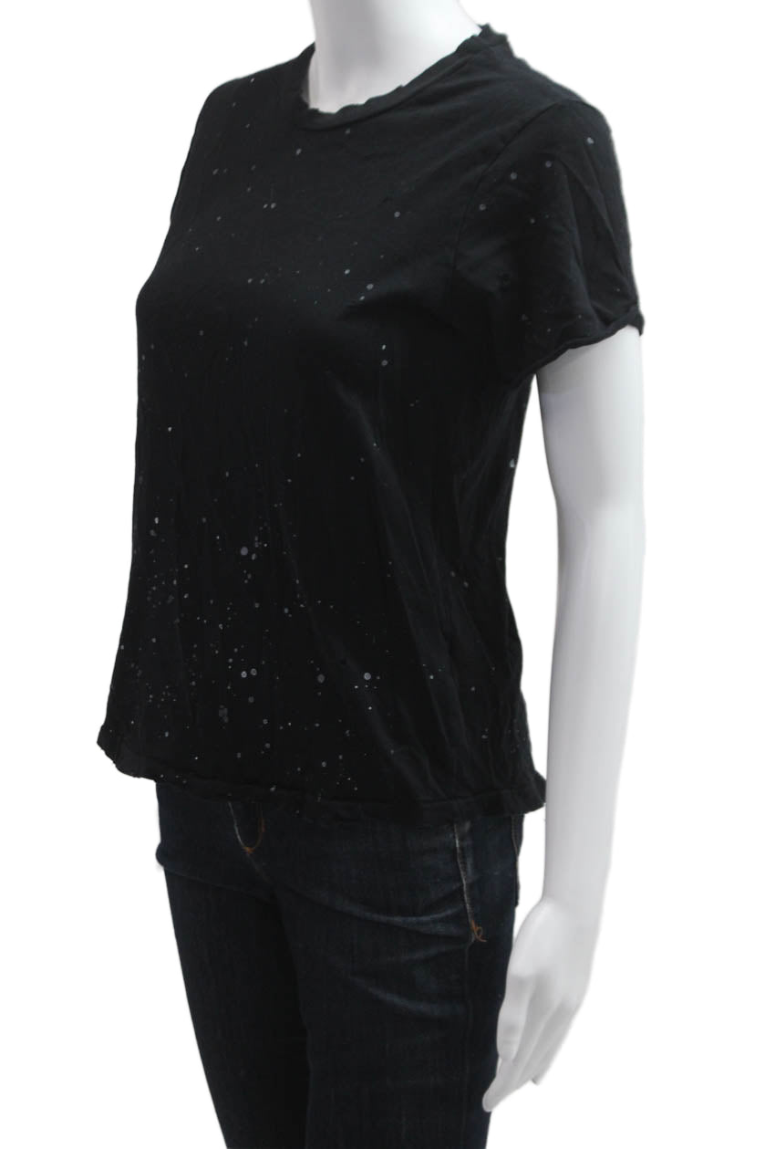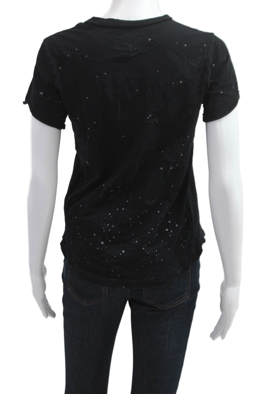 Current/Elliott Womens Black T-Shirt Crew Neck Lyocell Short Sleeve Size 0