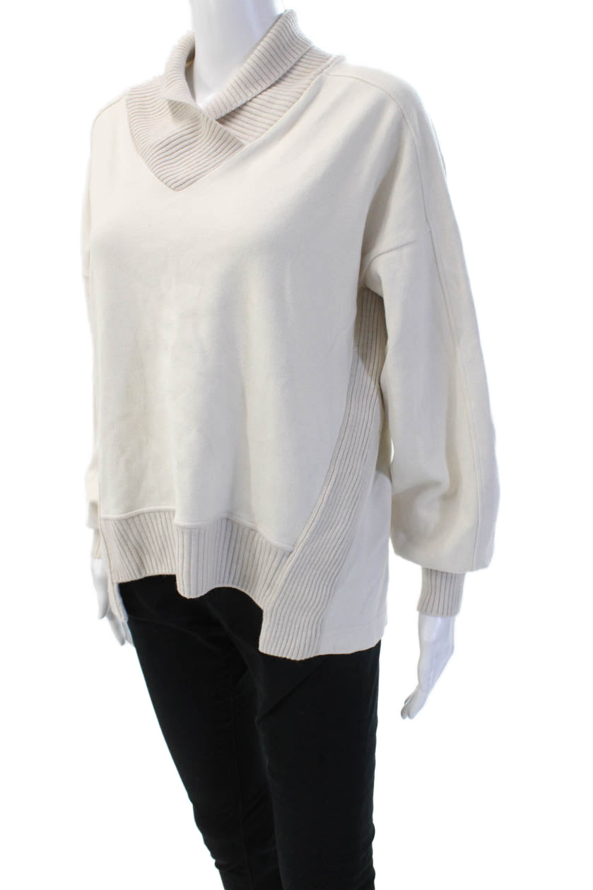 D. Exterior Unisex Beige Mock Neck Pullover Sweater Long Sleeve Size S