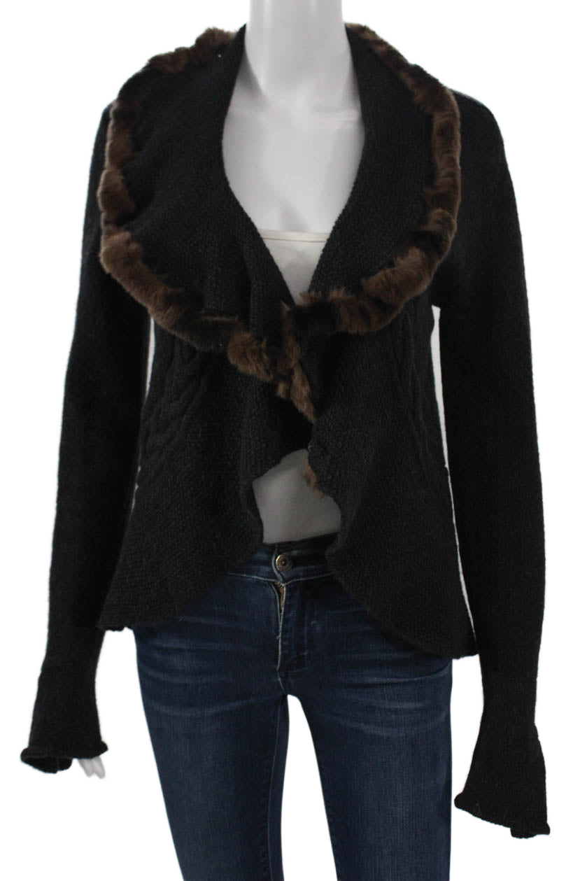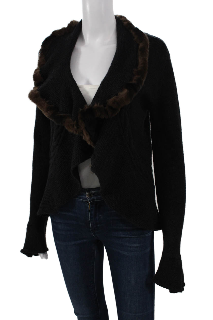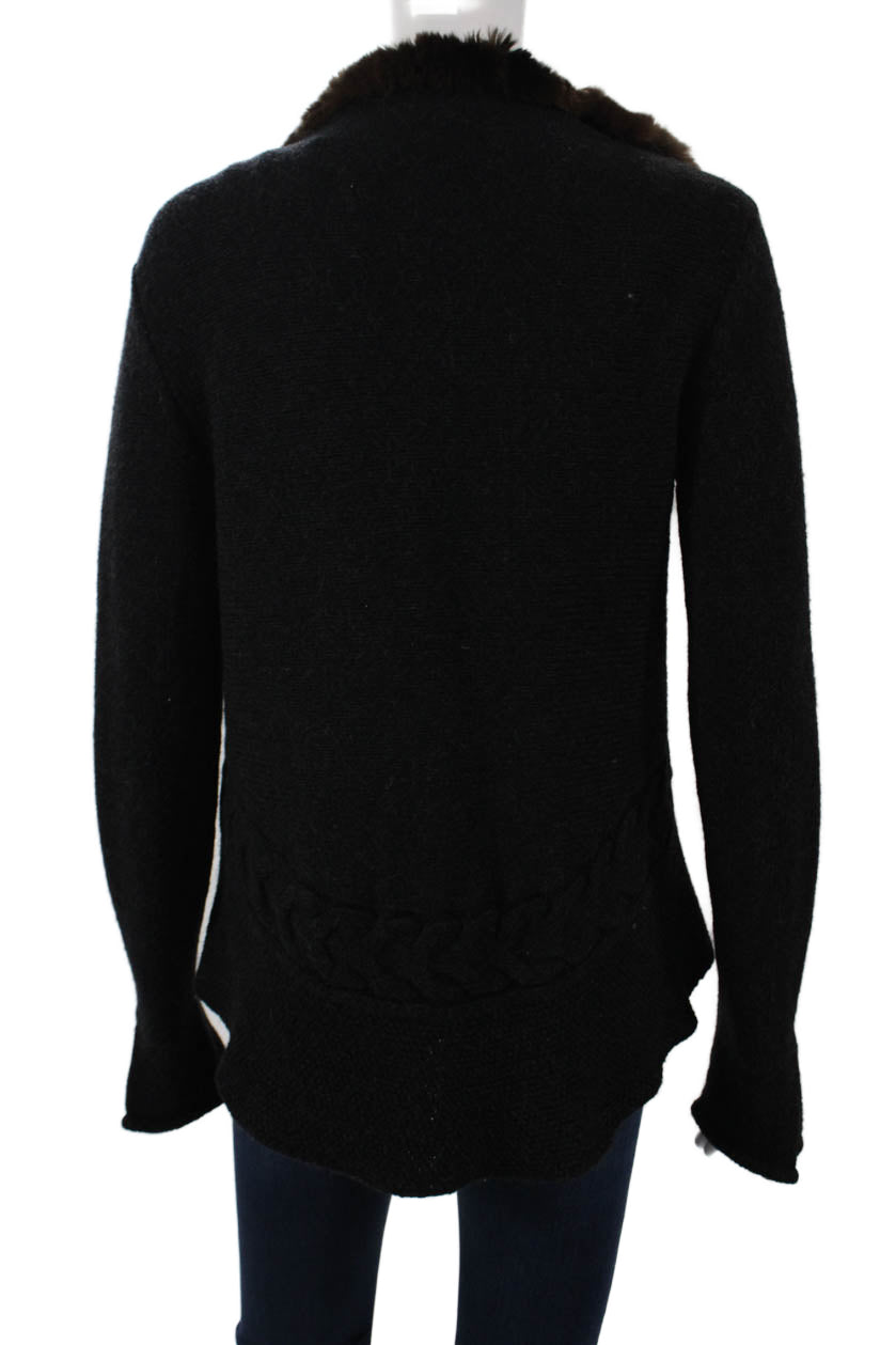 D Exterior Unisex Cardigan Black Solid Long Sleeve Wool Blend Designer Size M