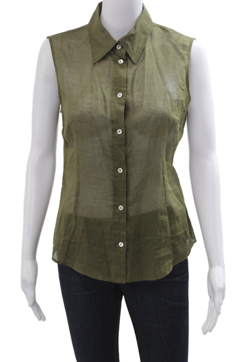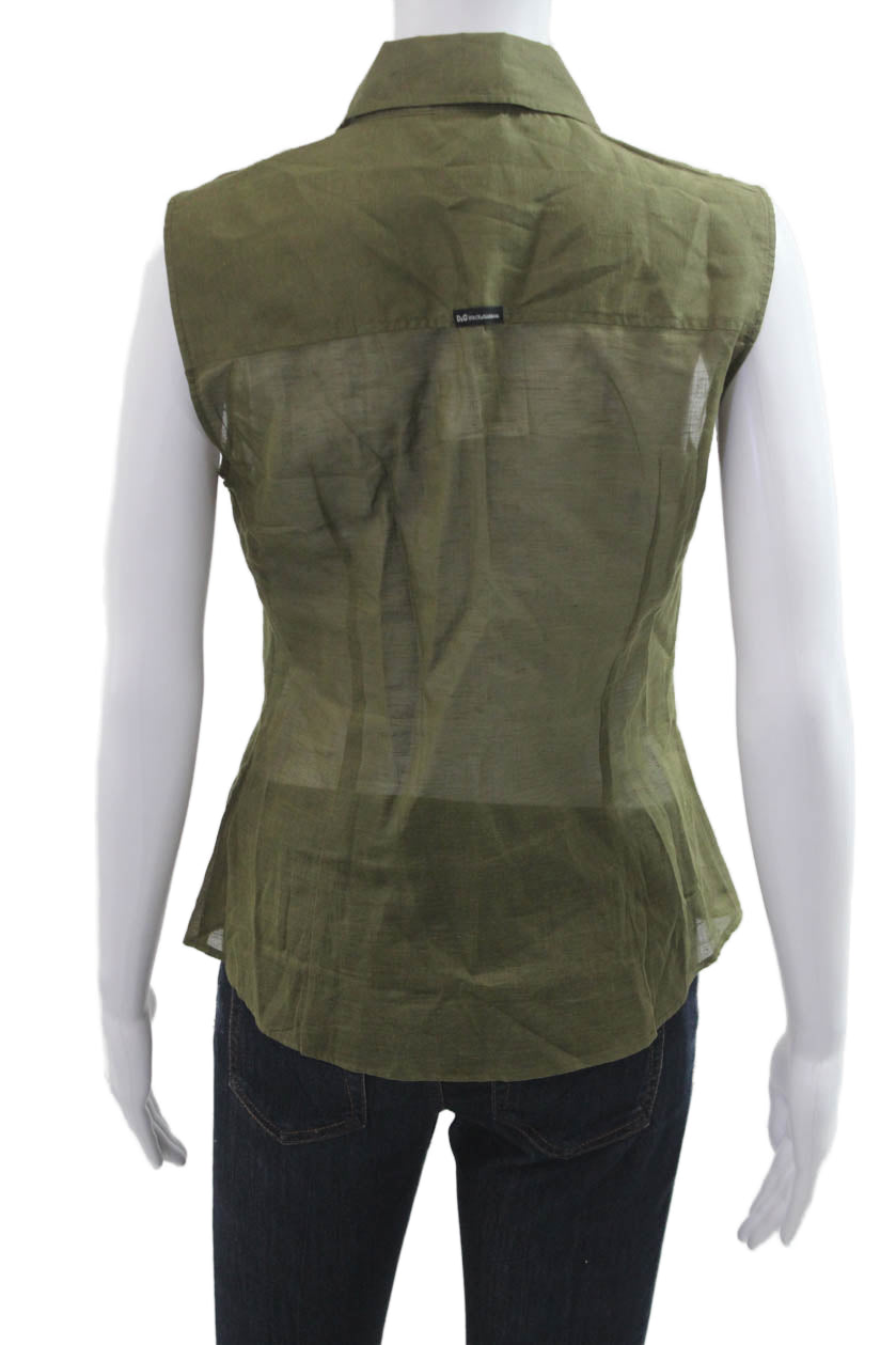 D&G Dolce & Gabbana Women Sleeveless Cotton Button-Up Top Green Size S