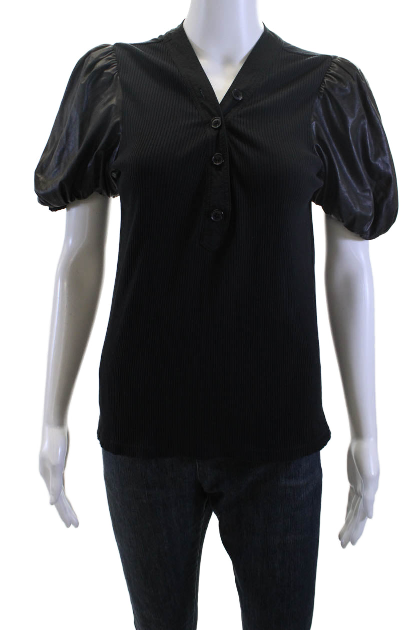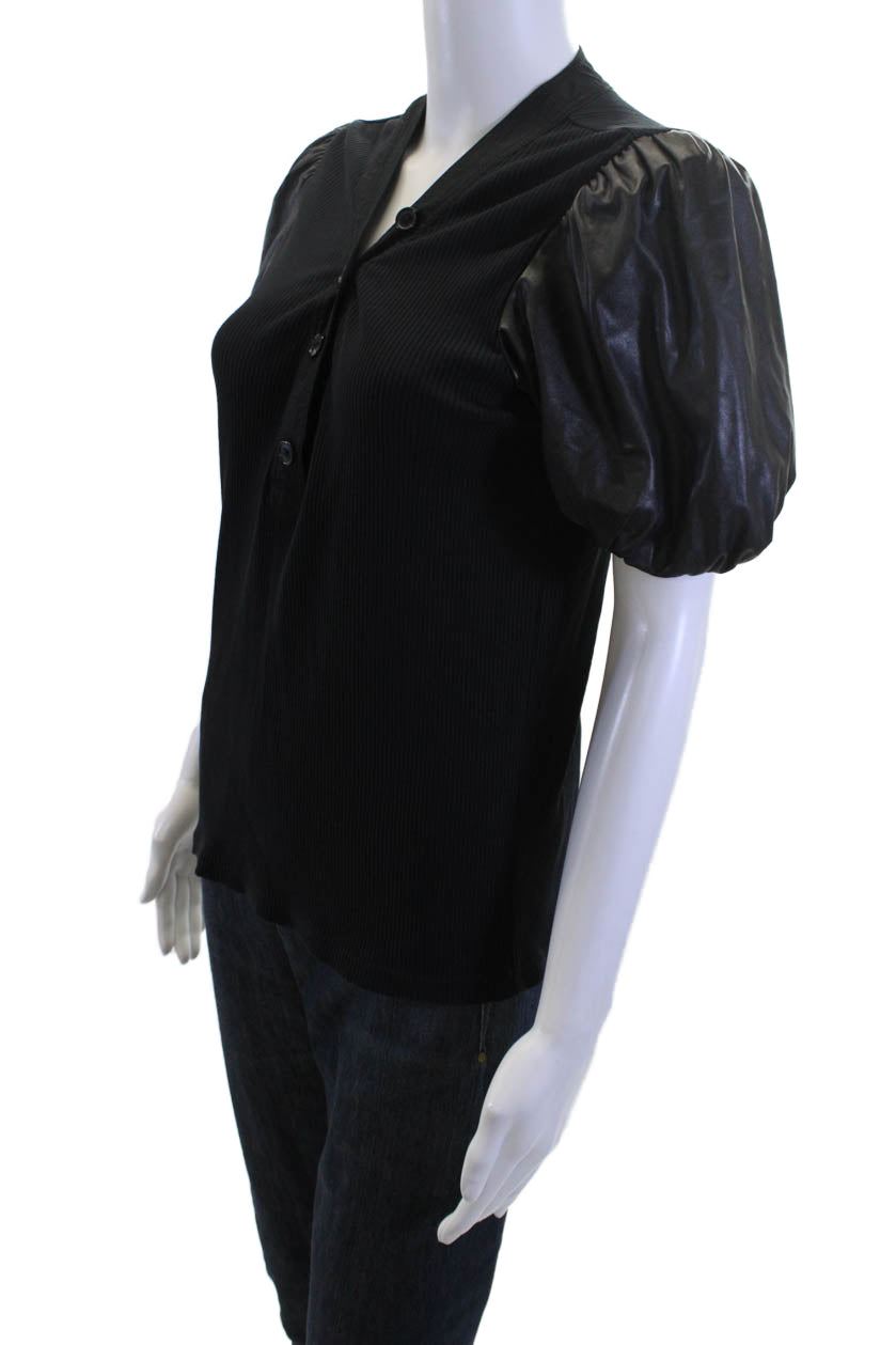Derek Lam 10 Crosby Womens Black V-Neck Short Sleeve Blouse Size M