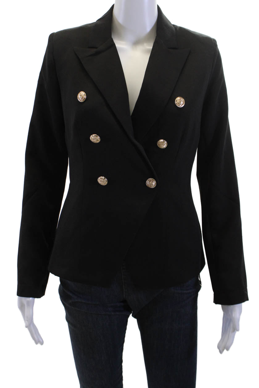 Do + Be Womens Black Collared Button Blazer Long Sleeve Size S