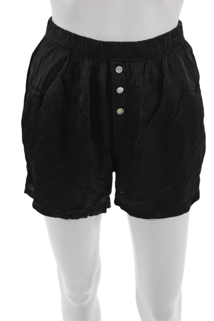 Donni Womens Elastic Waistband Three Button Lightweight Shorts Black Size XS