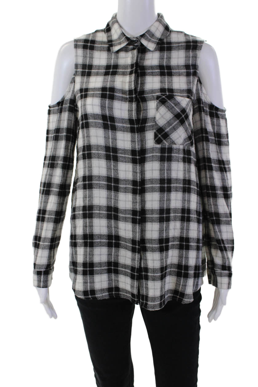 Drew Womens Plaid Collar Cold Shoulder Long Sleeve Blouse Top Black Size S