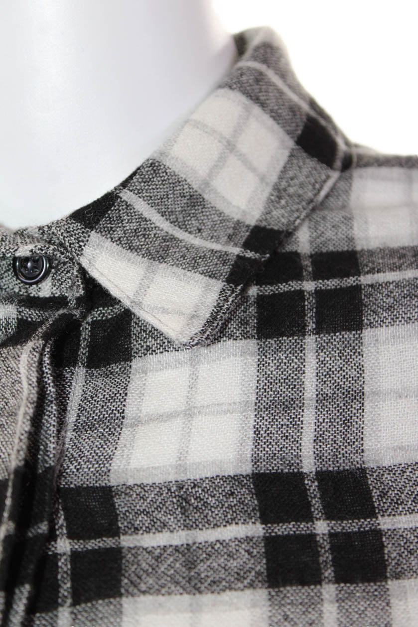 Shana Womens Plaid Button Down Long Sleeves Shirt Black White Size Extra Small