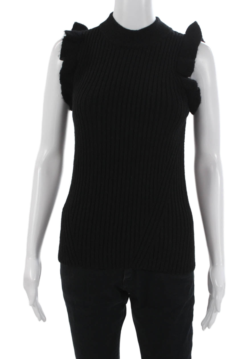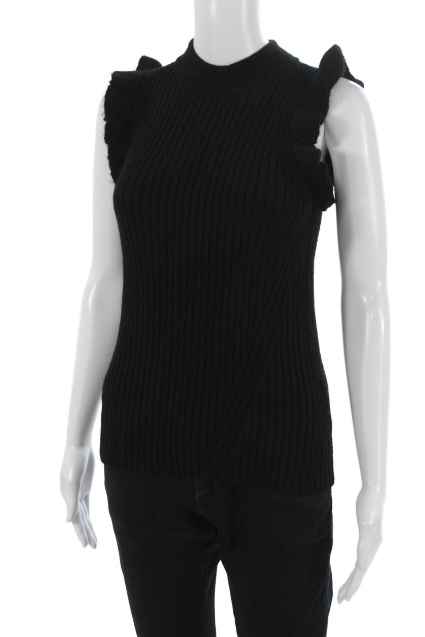 Eleven Six Womens Black Baby Alpaca Mock Neck Sleeveless Tank Size M