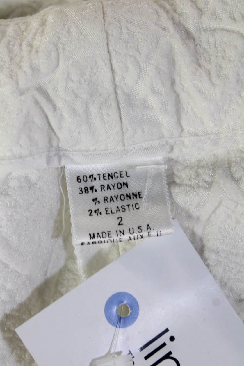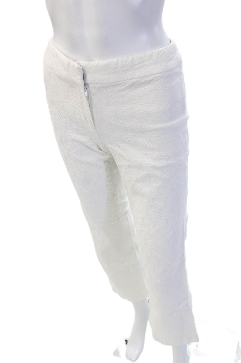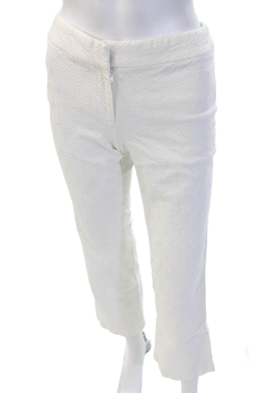 Elie Tahari Womens Cropped Pants White Geometric Tencel Rayon Size 2