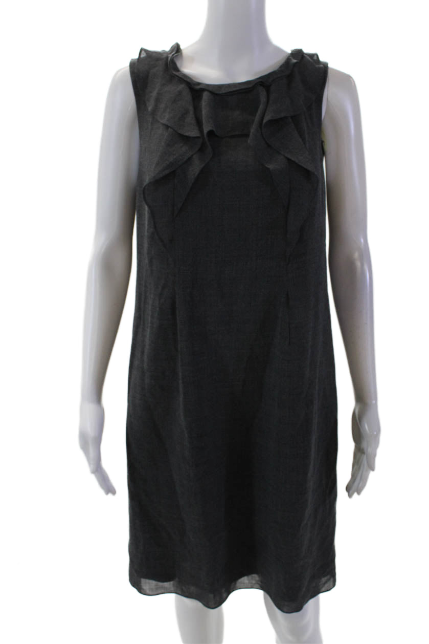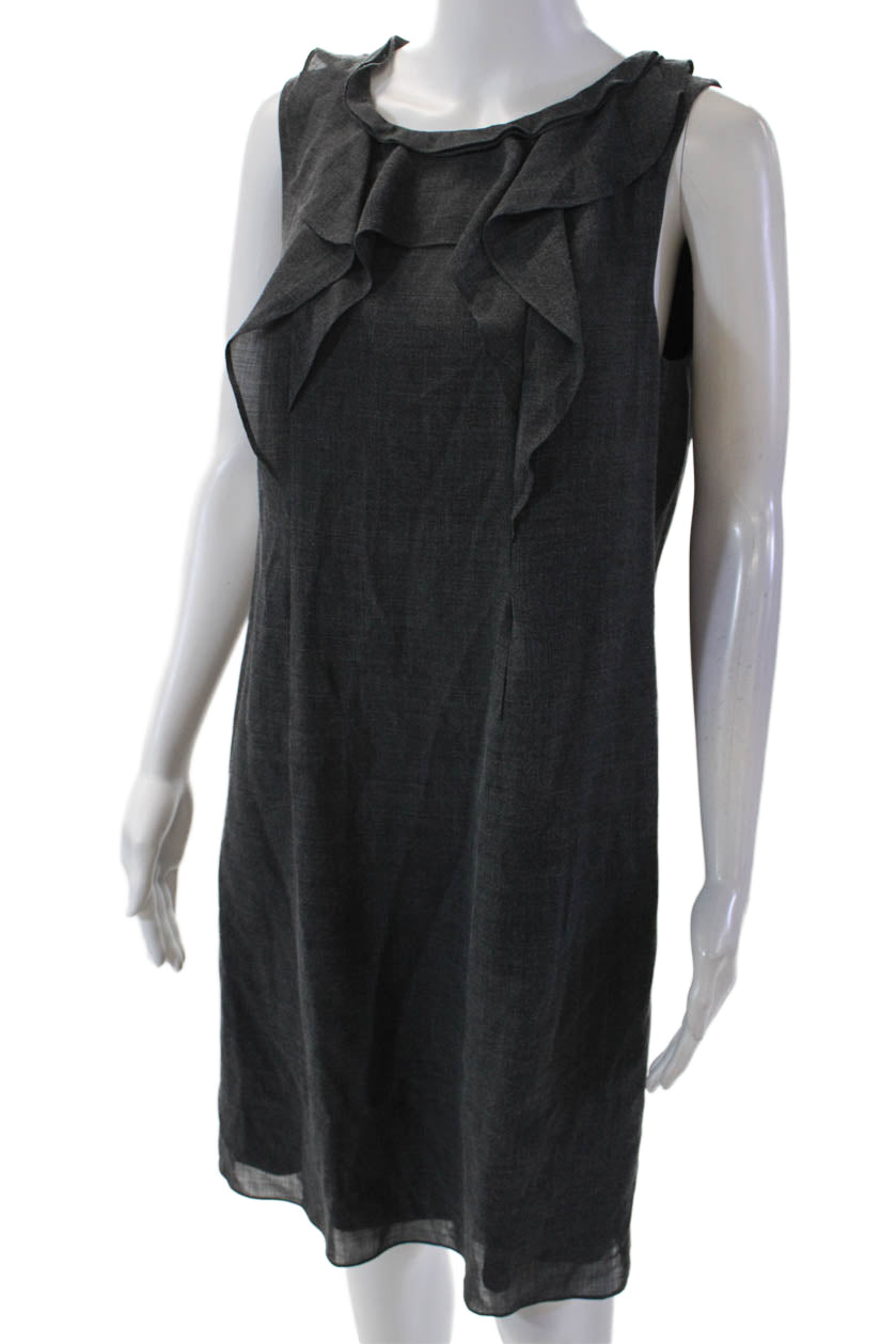 Elie Tahari Women's Round Neck Ruffle Sleeveless Mini Workwear Dress Gray Size M