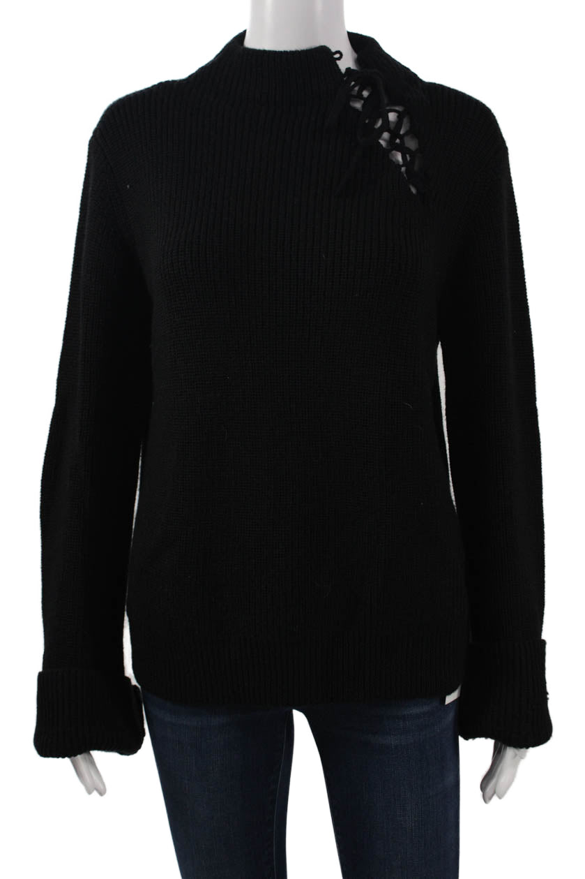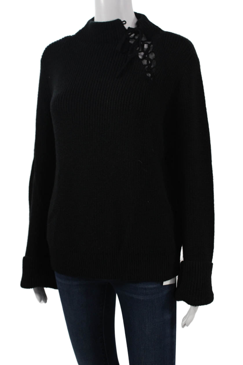 Ella Moss Womens Pullover Sweater Black Mock Neck Long Sleeve Size L