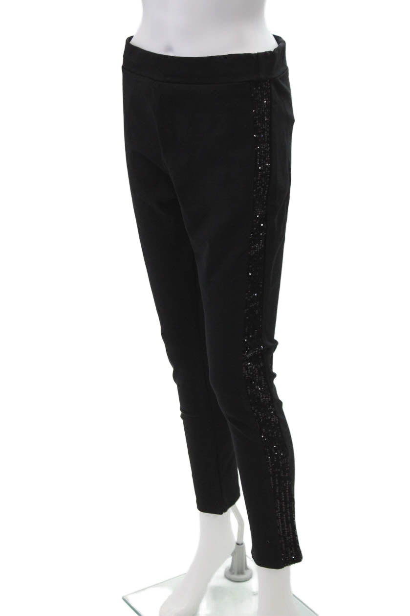 Flora Ashley Womens Sequined Stretch High-Rise Tapered Pants Black Size XS