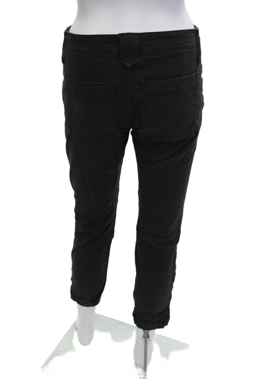 Frame Womens Cropped Cargo Pants Black Zip 70% Cotton Size 25