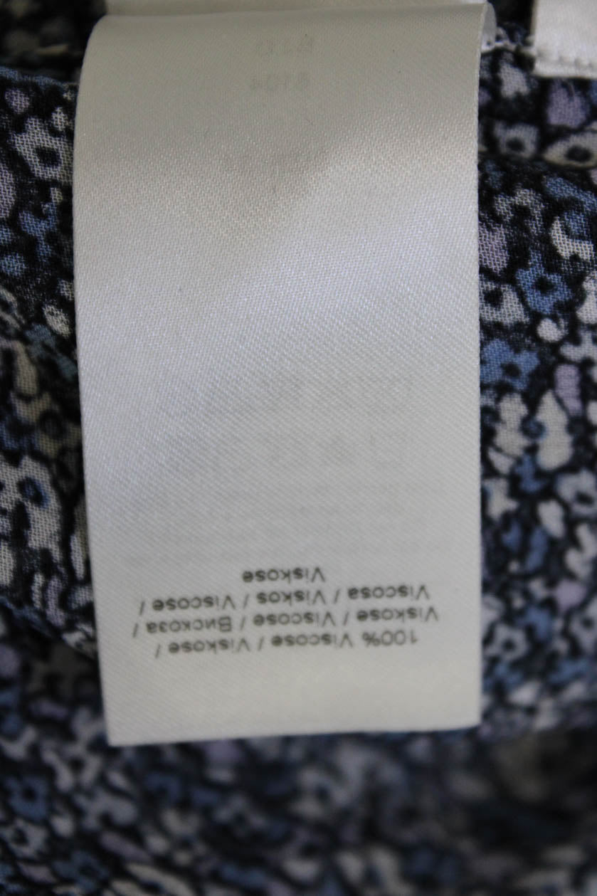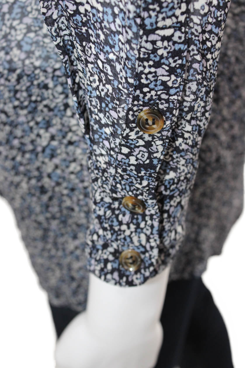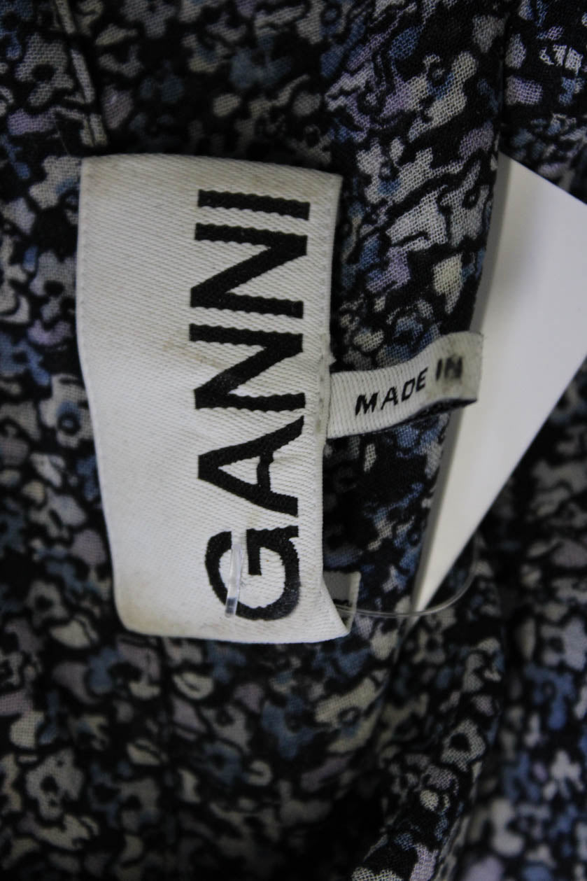 Ganni Women Black Floral Collared Button-Up Viscose Long Sleeve Blouse Size 34