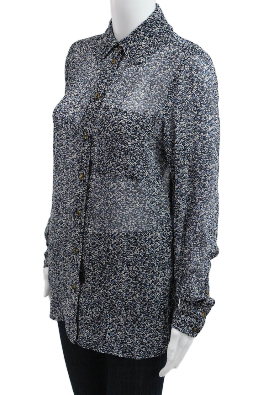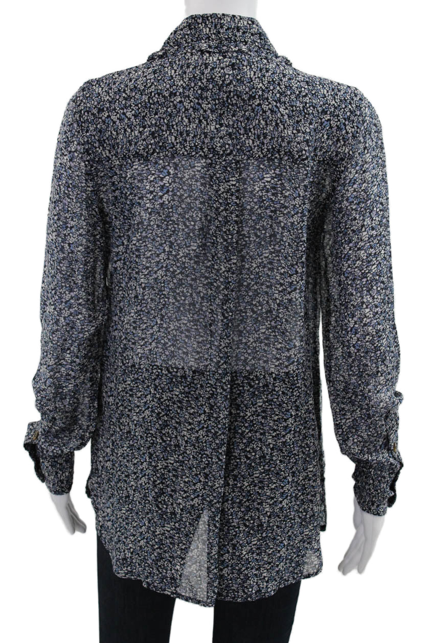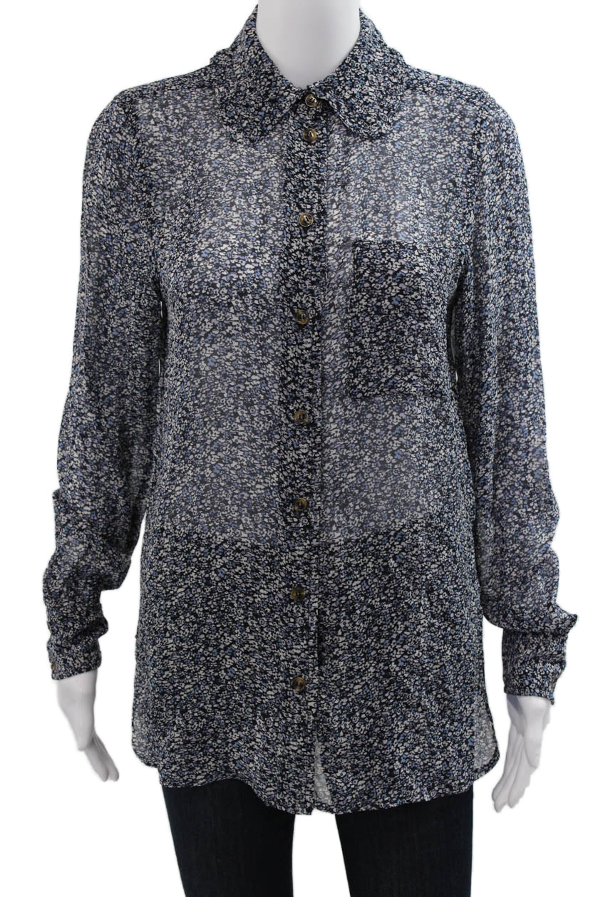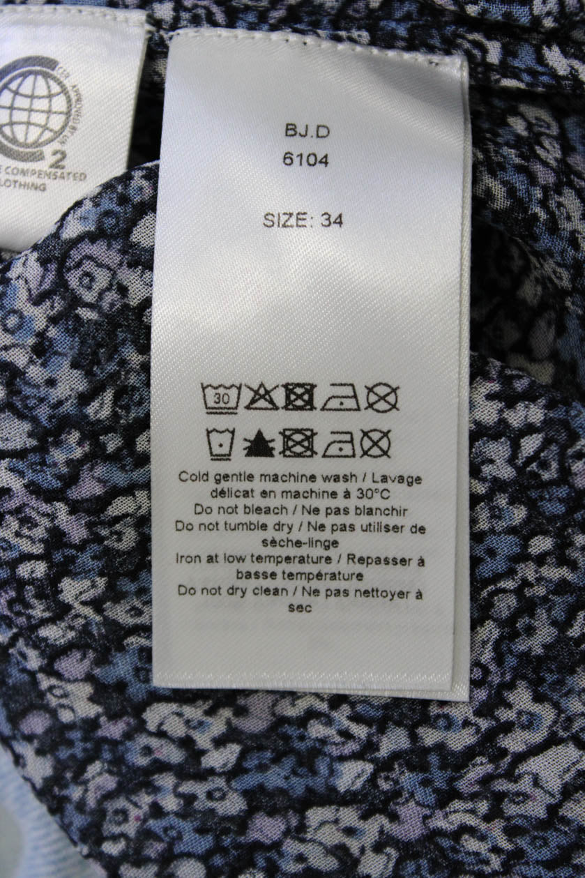 Ganni Women Black Floral Collared Button-Up Viscose Long Sleeve Blouse Size 34