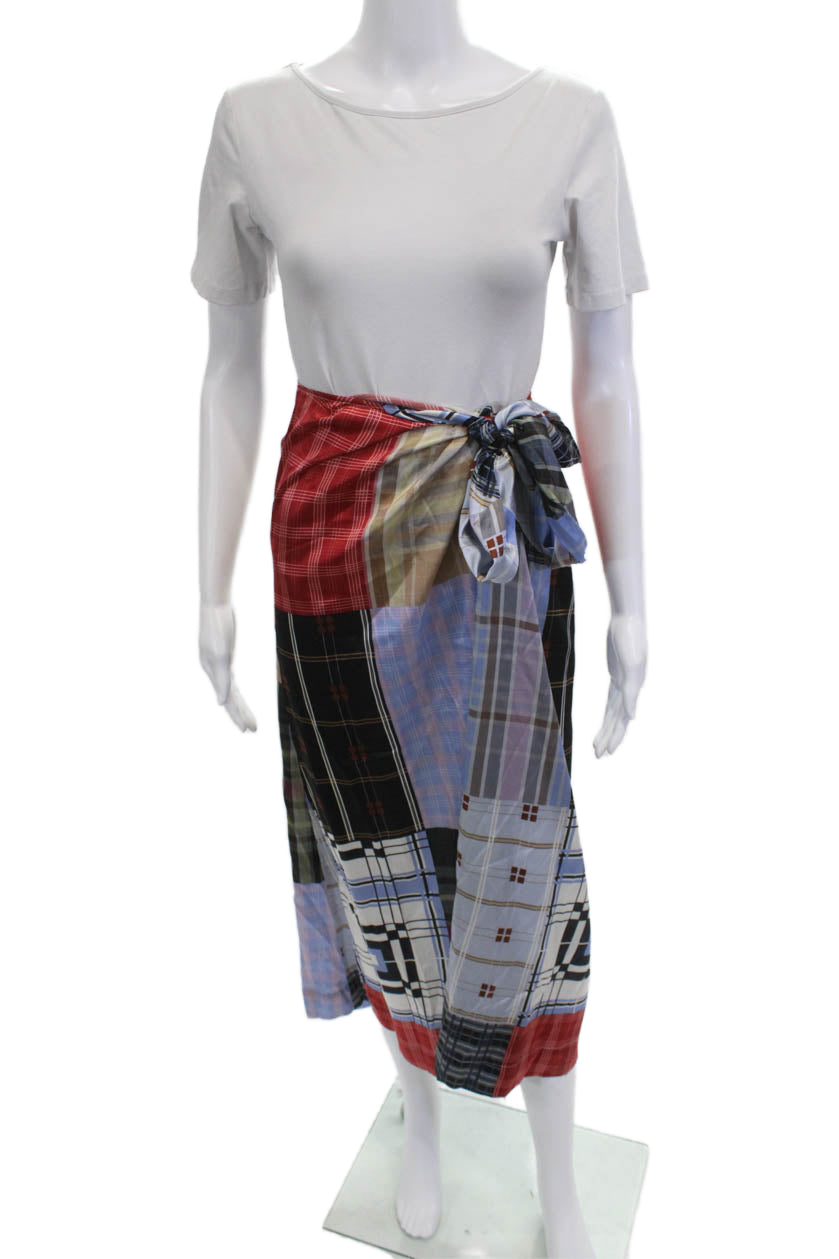 Ganni Womens Wrap Maxi Skirt Black Plaid Silk Size 36
