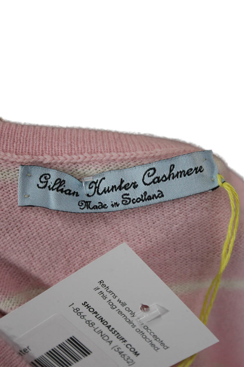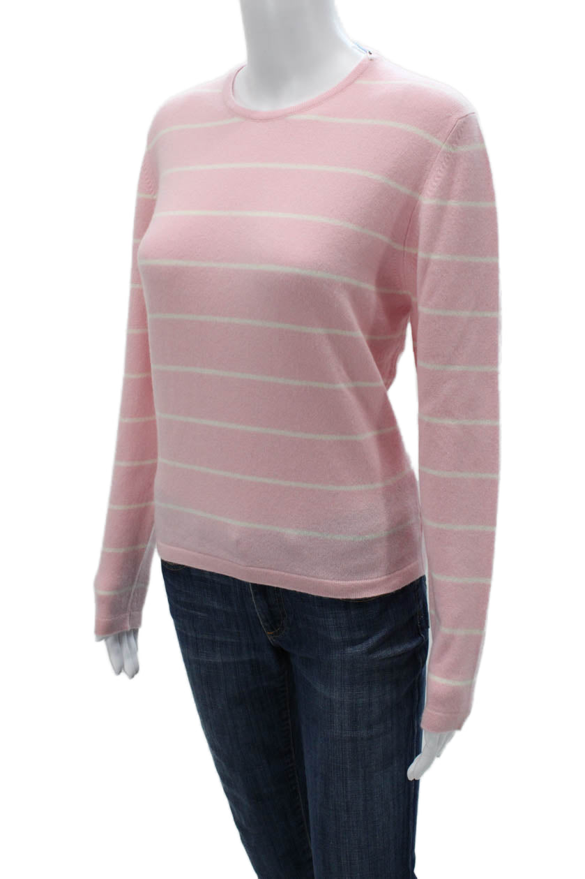 Gillian Hunter Cashmere Women Striped Crewneck Pullover Pink Cashmere Size XL
