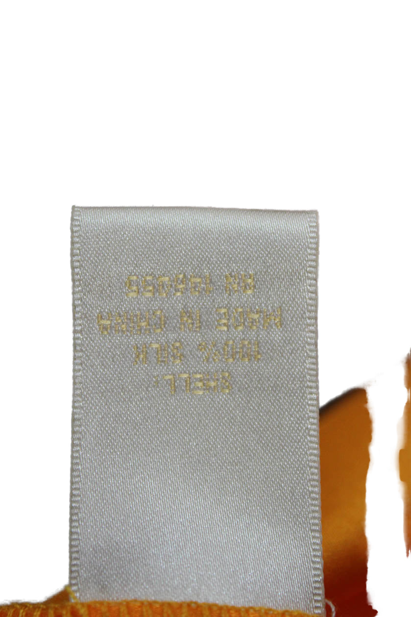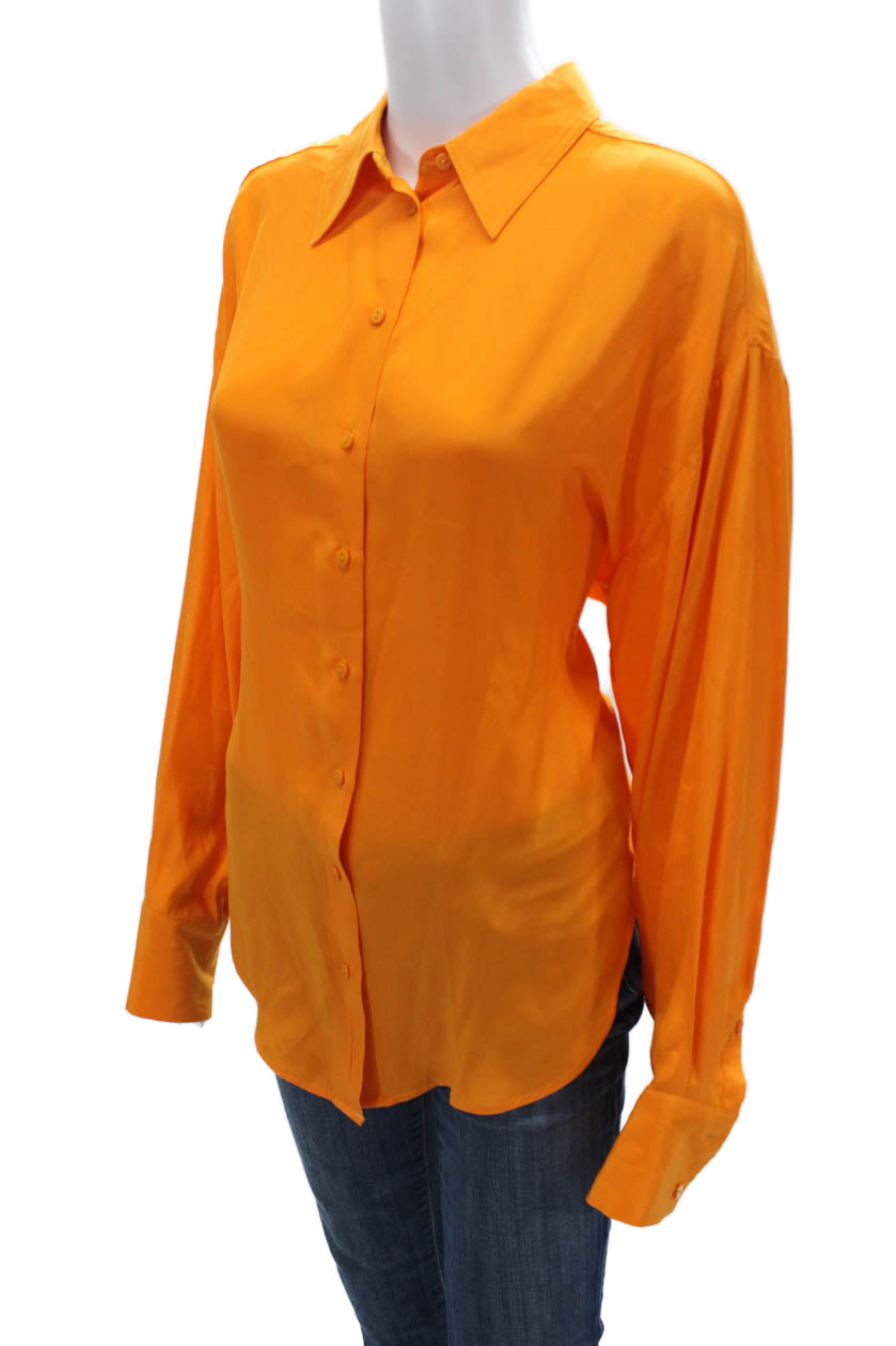 Gold Hawk Women Orange 100% Silk Collared Button Up Blouse Long Sleeve Size XS