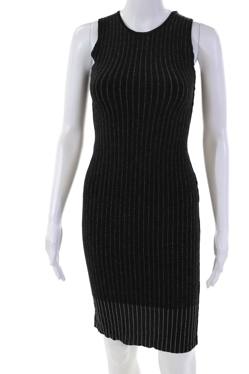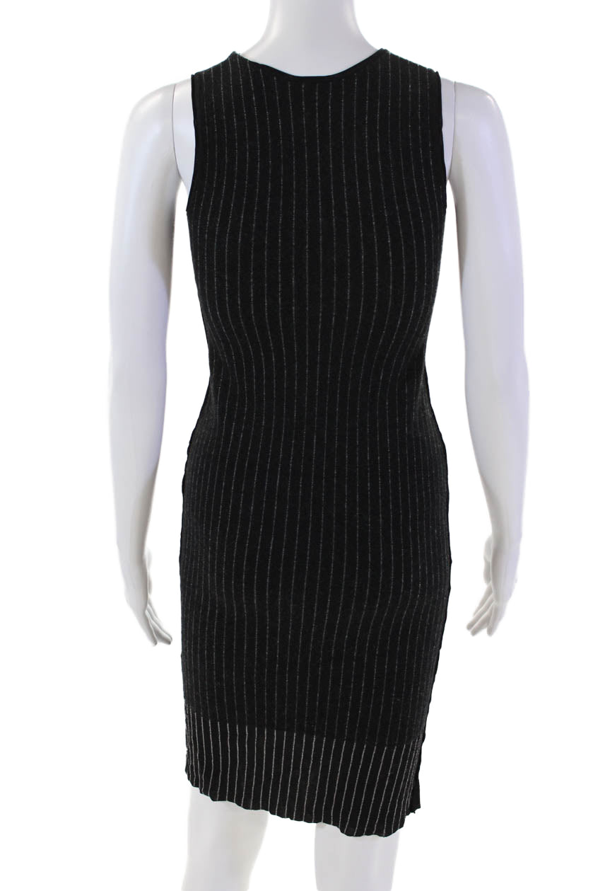 Grey Jason Wu Womens Wool Pinstripe Round Neck Mid-Calf Tank Dress Black Size XS
