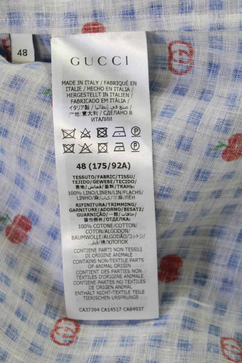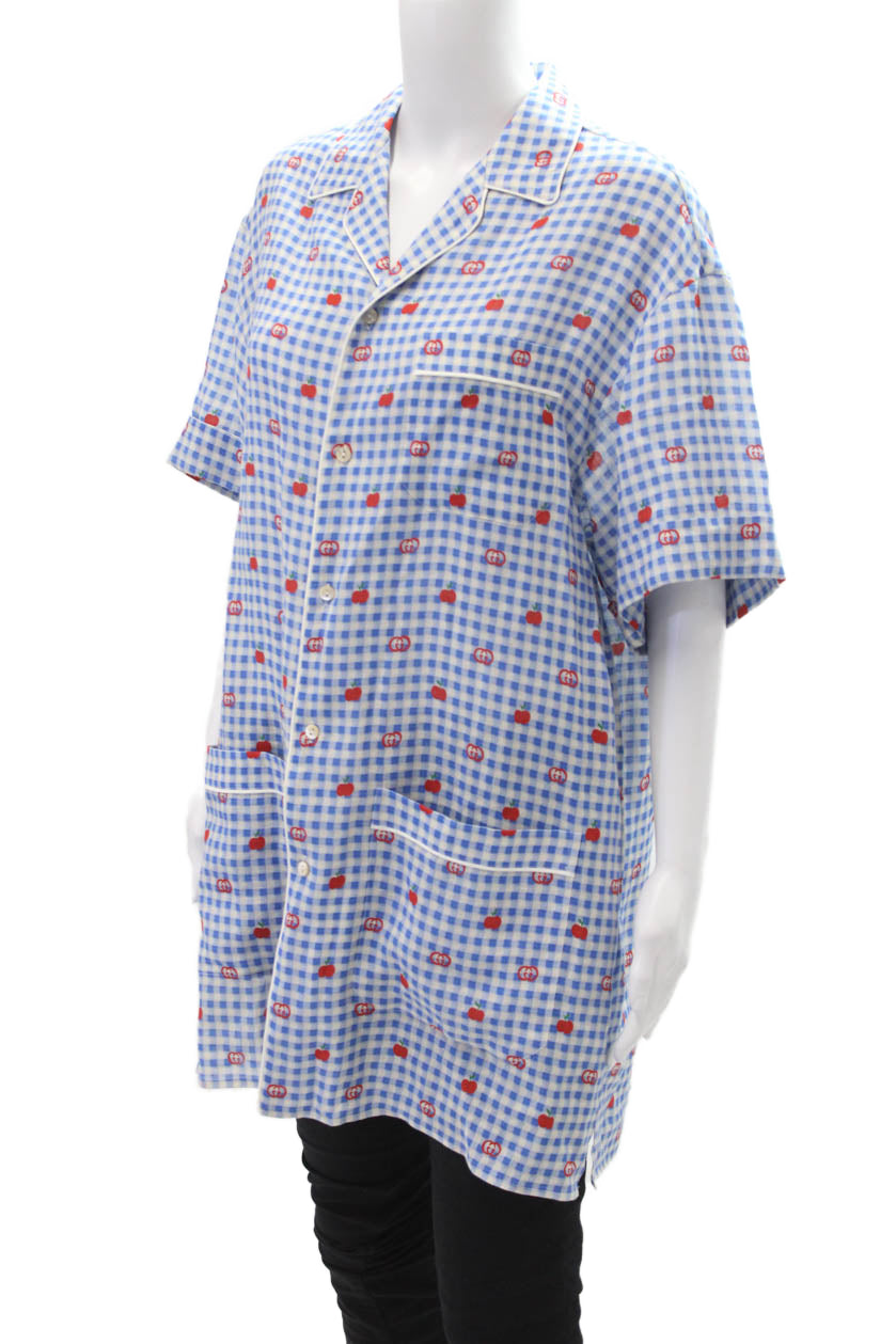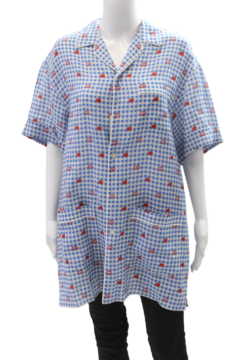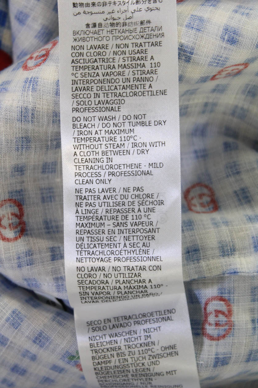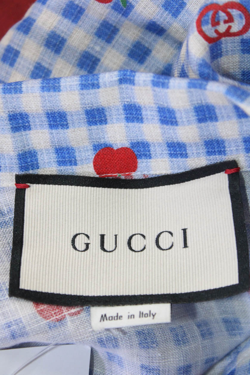 Gucci Womens Linen Short Sleeve Gingham Monogram Sleepwear Dress Blue Size 48