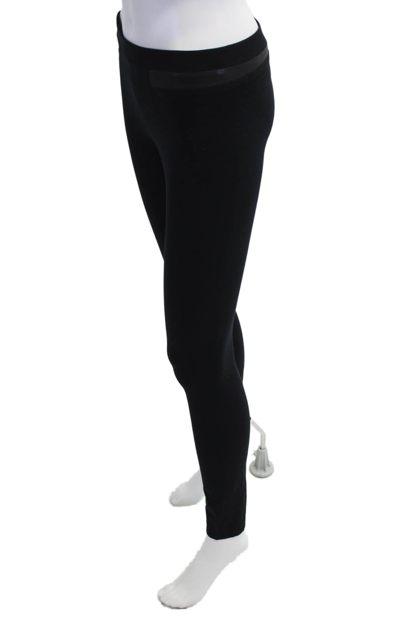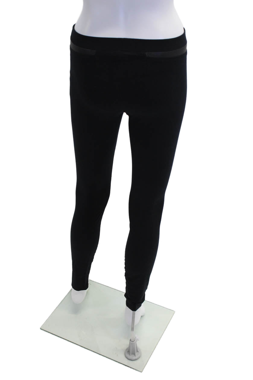 Helmut Lang Womens High Waisted Leather Panel Casual Leggings Black Size P