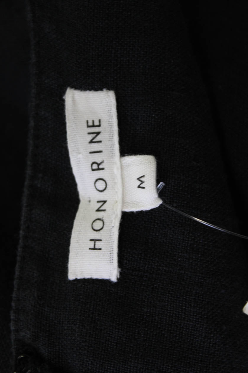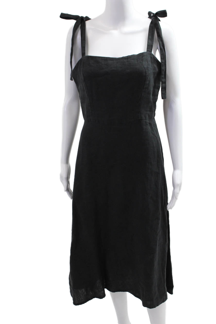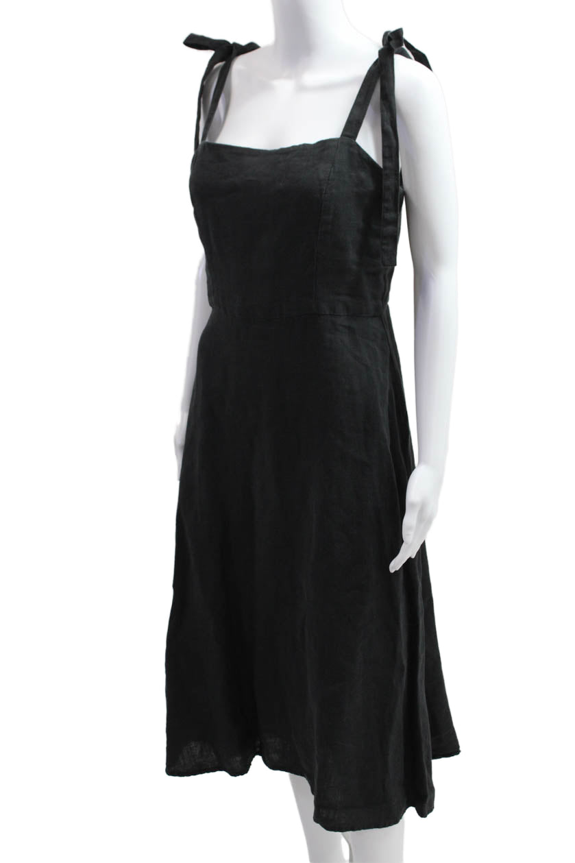 Honorine Womens A-Line Sundress Black Square Neck Linen Tie Waist Size M