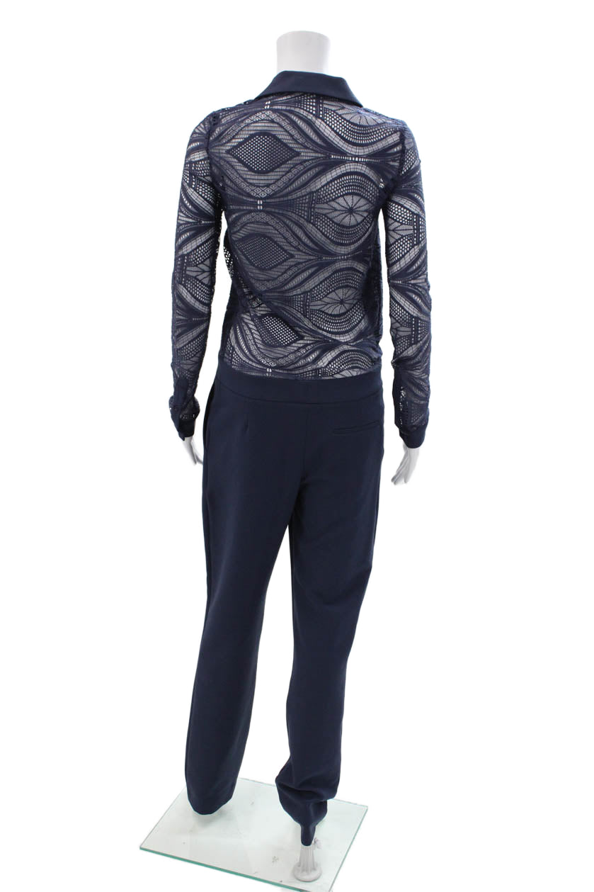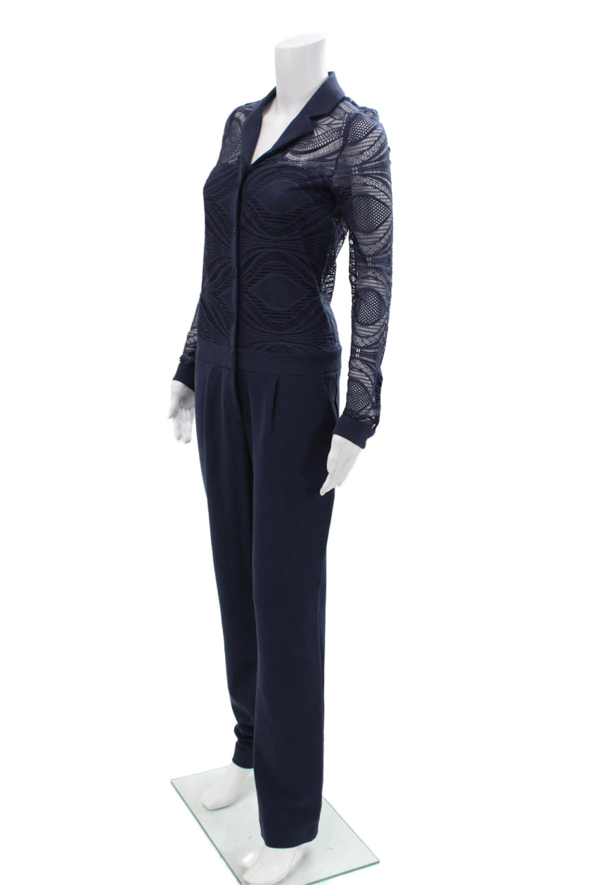 Hotel Particulier Womens Pleated Front Long Sleeves Jumpsuit Navy Blue Size Smal