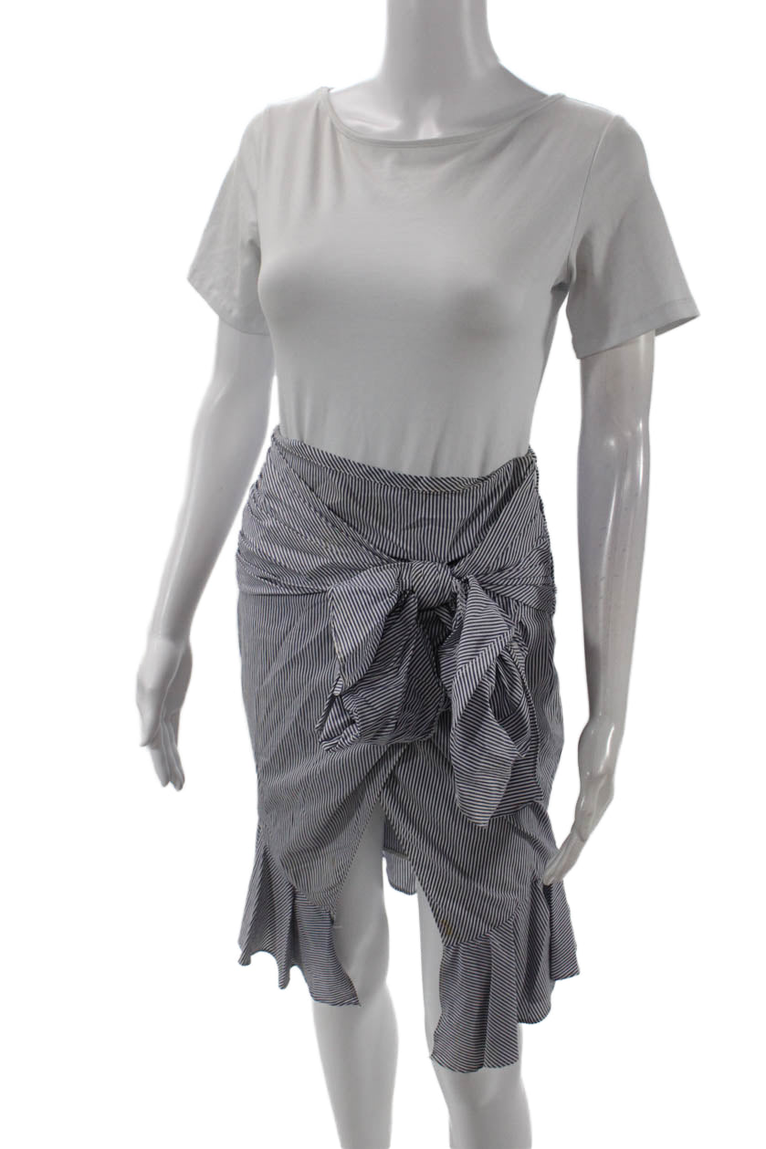 Intermix Womens Side Zip Bow Front Striped Peplum Skirt White Blue Size Petite