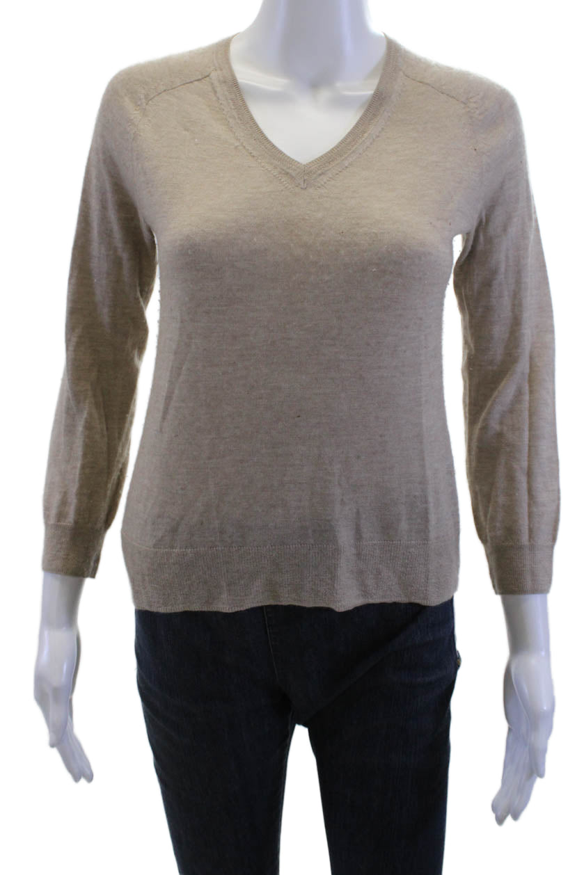 Isabel Marant Women Beige VNeck Pullover Sweater 3/4 Sleeve Cashmere Size 0