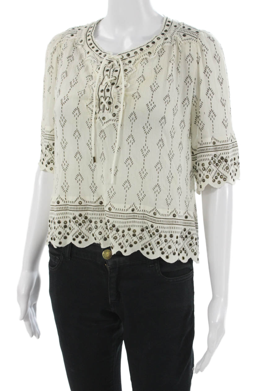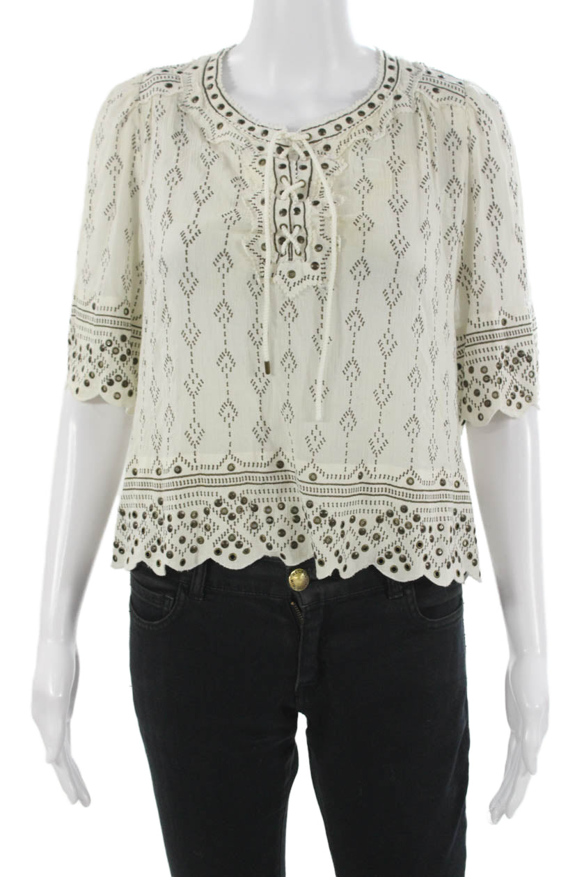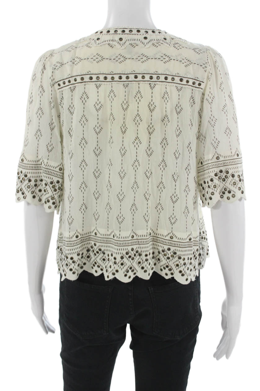 Isabel Marant Womens Cropped White Cotton Short Sleeve Blouse Size M