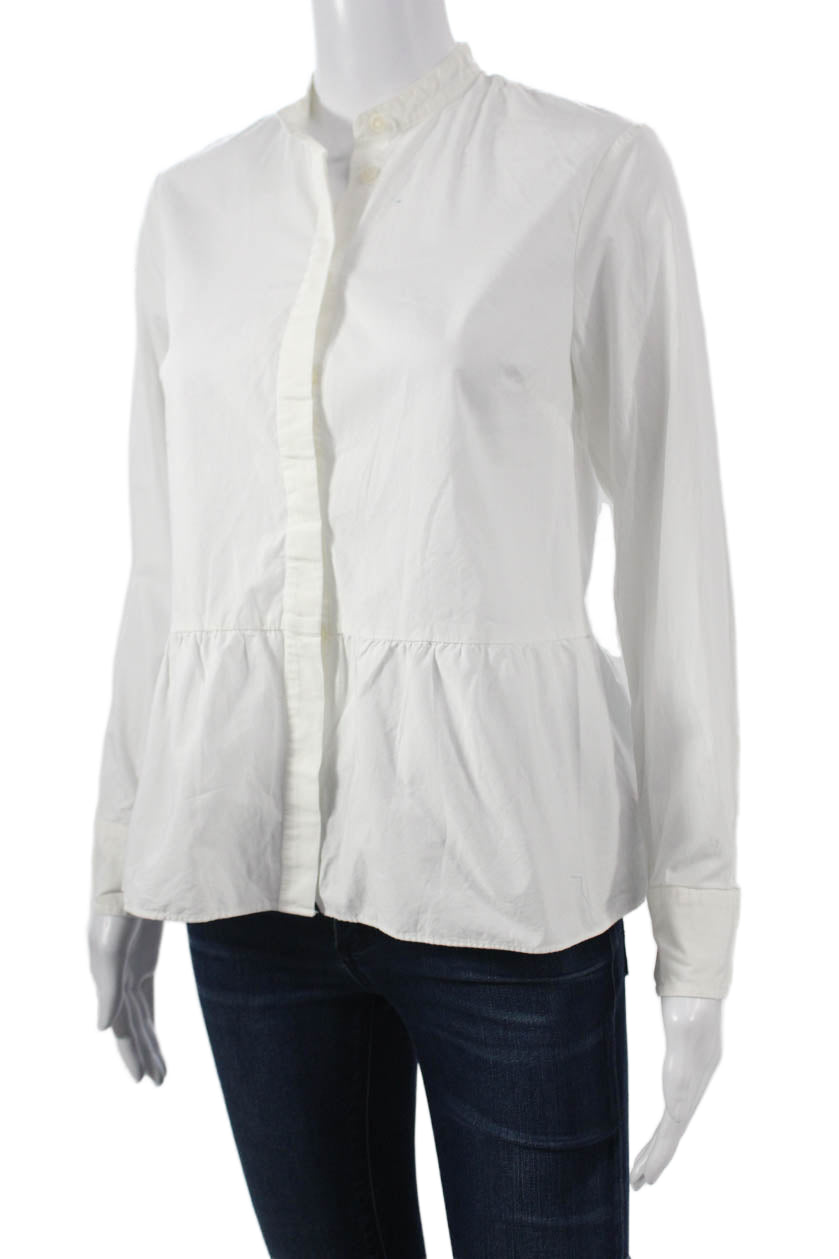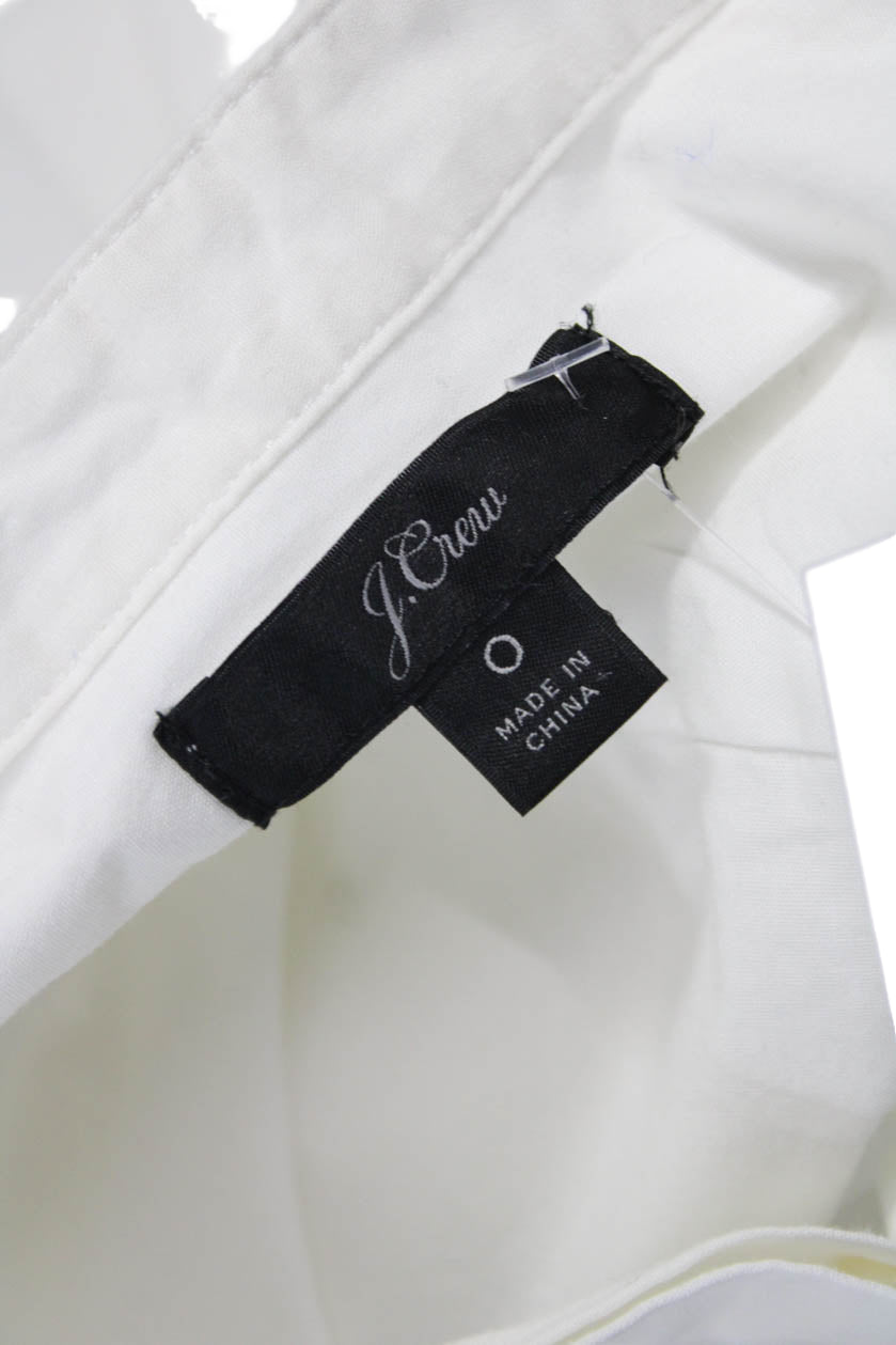 J Crew Women White Collared Button Front Basic Blouse Long Sleeve Size 0