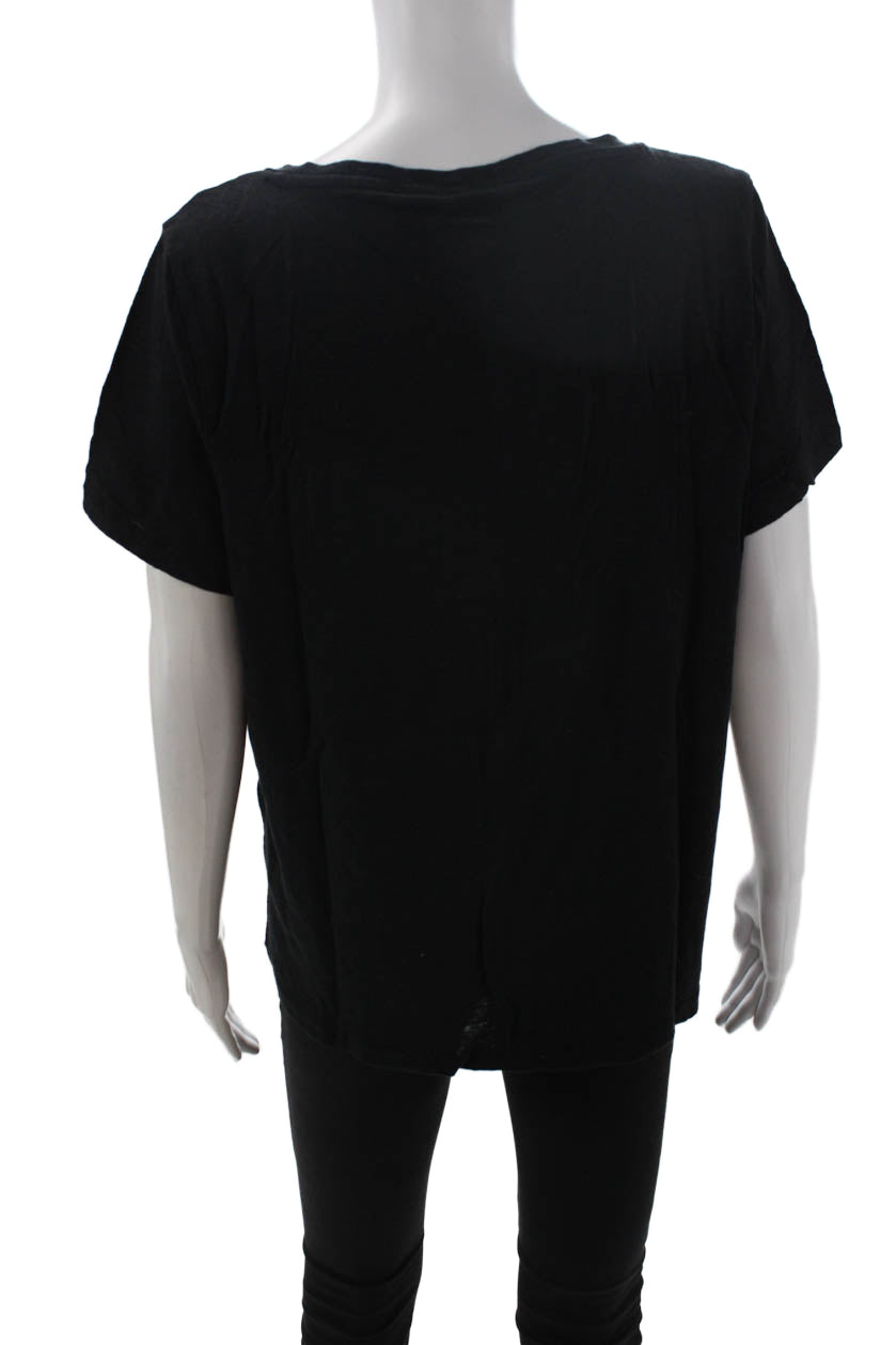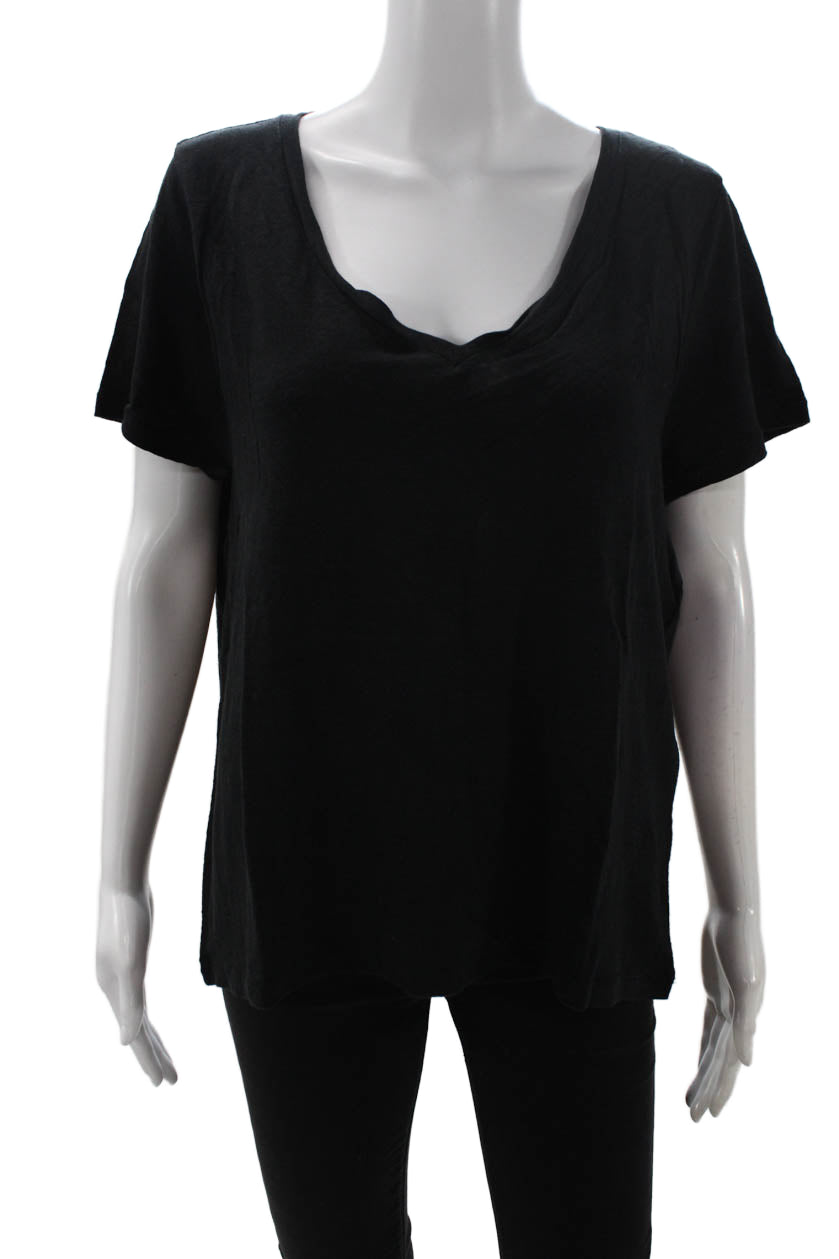 J Crew Womens Basic Black Linen V-Neck Short Sleeve T-Shirt Size 2XL