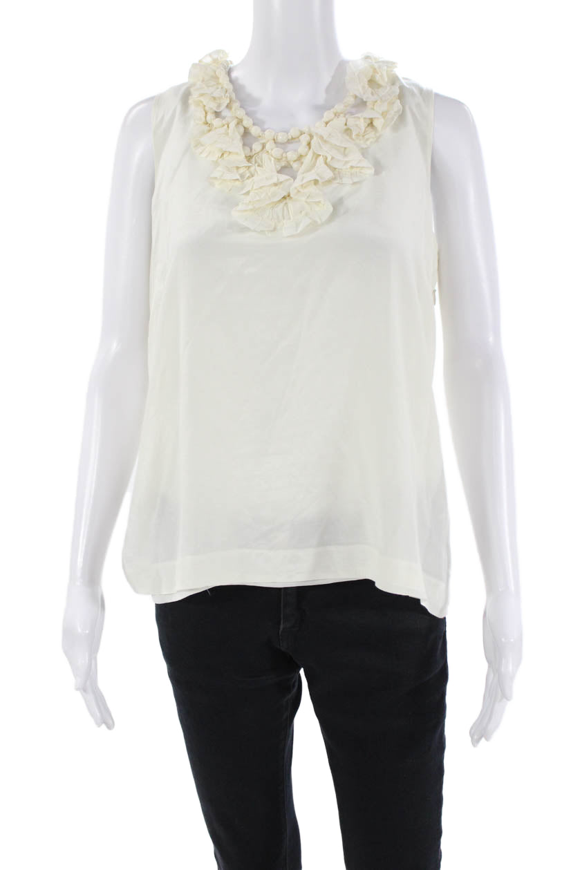 J Crew Womens Silk Ruffled Neckline Sleeveless Tank Top Off White Size 12