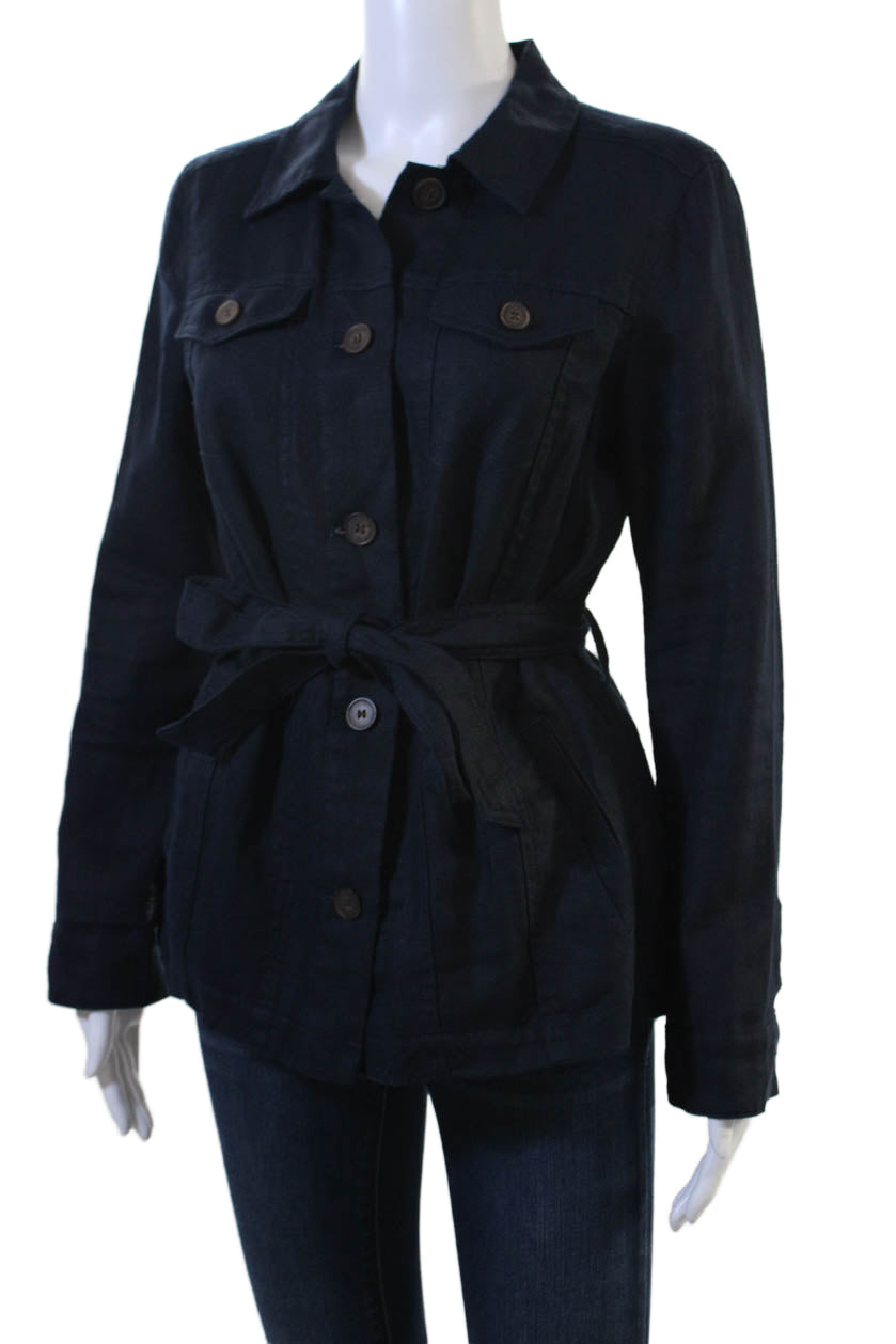 J. Mclaughlin Women Dark Blue Linen Collared Button Jacket Size XS