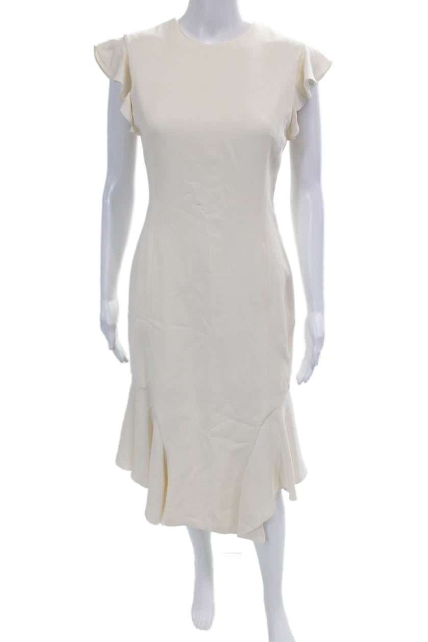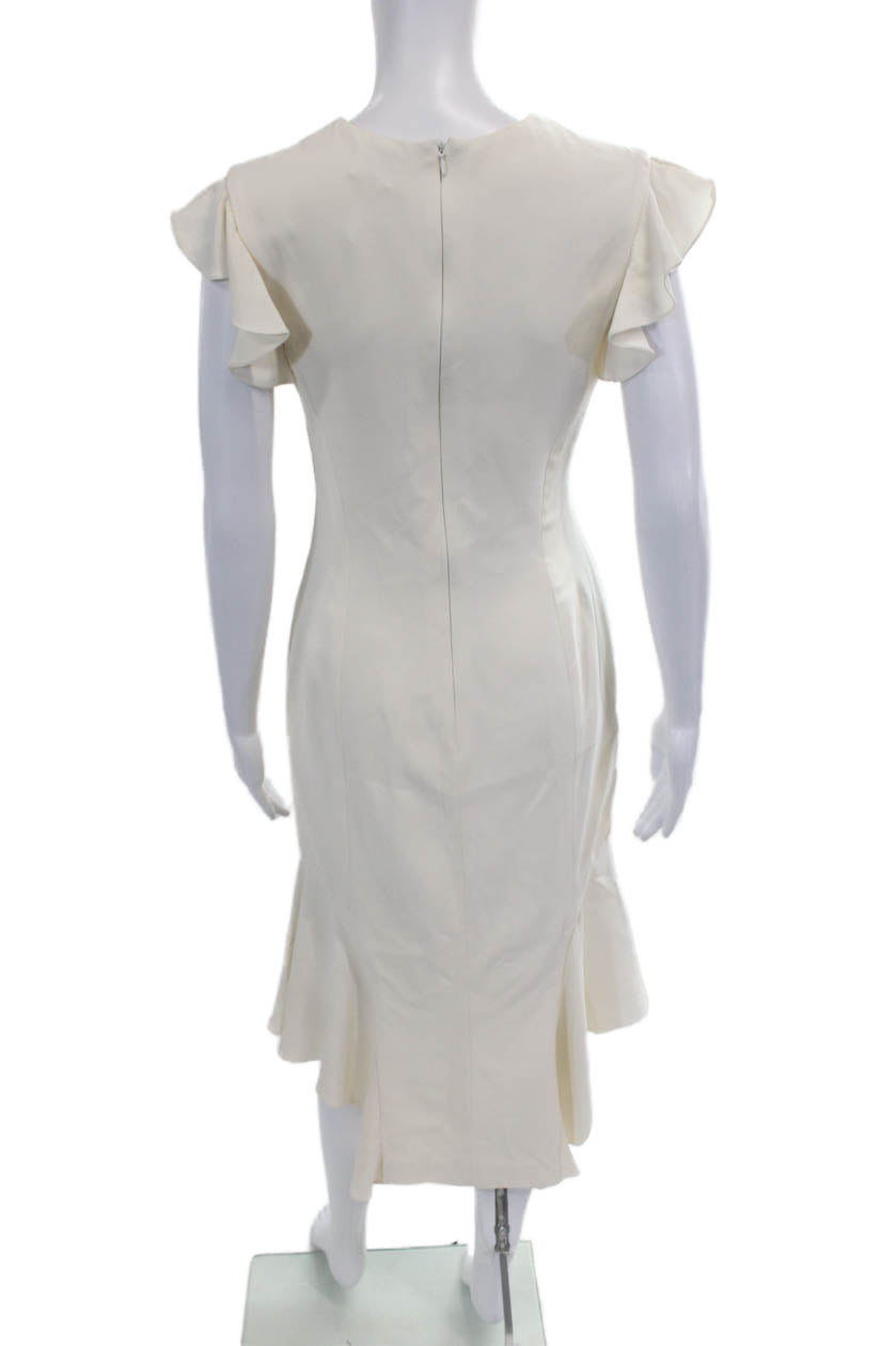 J. Mendel Women's Round Neck Ruffle Sleeves Fitted Midi Dress Beige Size 6