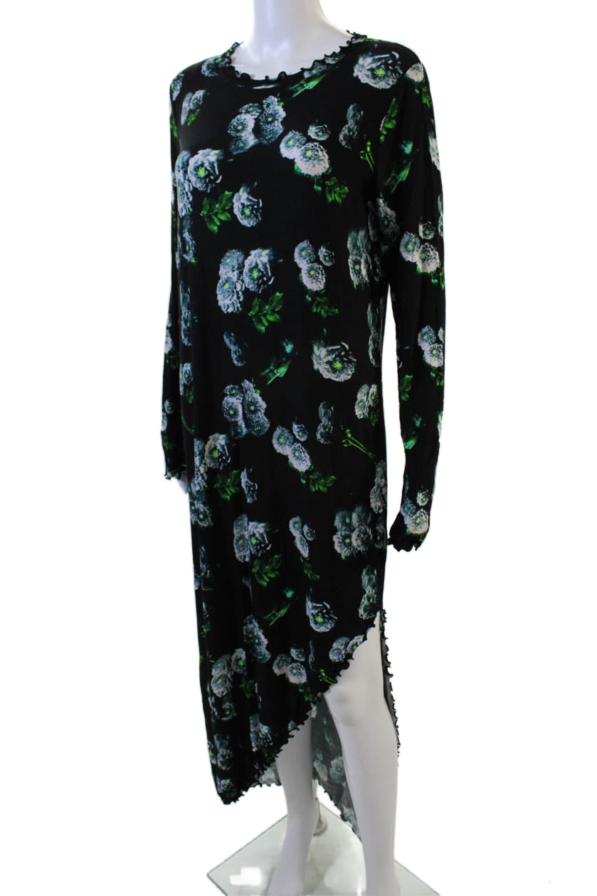 Jonathan Cohen Women Black Floral Maxi Sweater Dress Size 1X