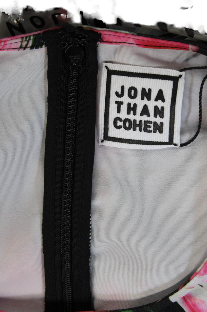 Jonathan Cohen Women Sheath Dress Black Floral Long Sleeve Crew Neck Size L