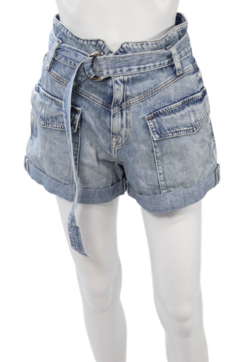 Jonathan Simkhai Unisex Cargo Shorts Blue Organic Cotton Buckle Size 26