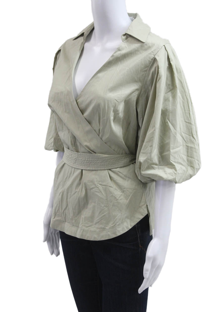Jonathan Simkhai Women Beige V-Neck Tie Short Sleeve Blouse Size S