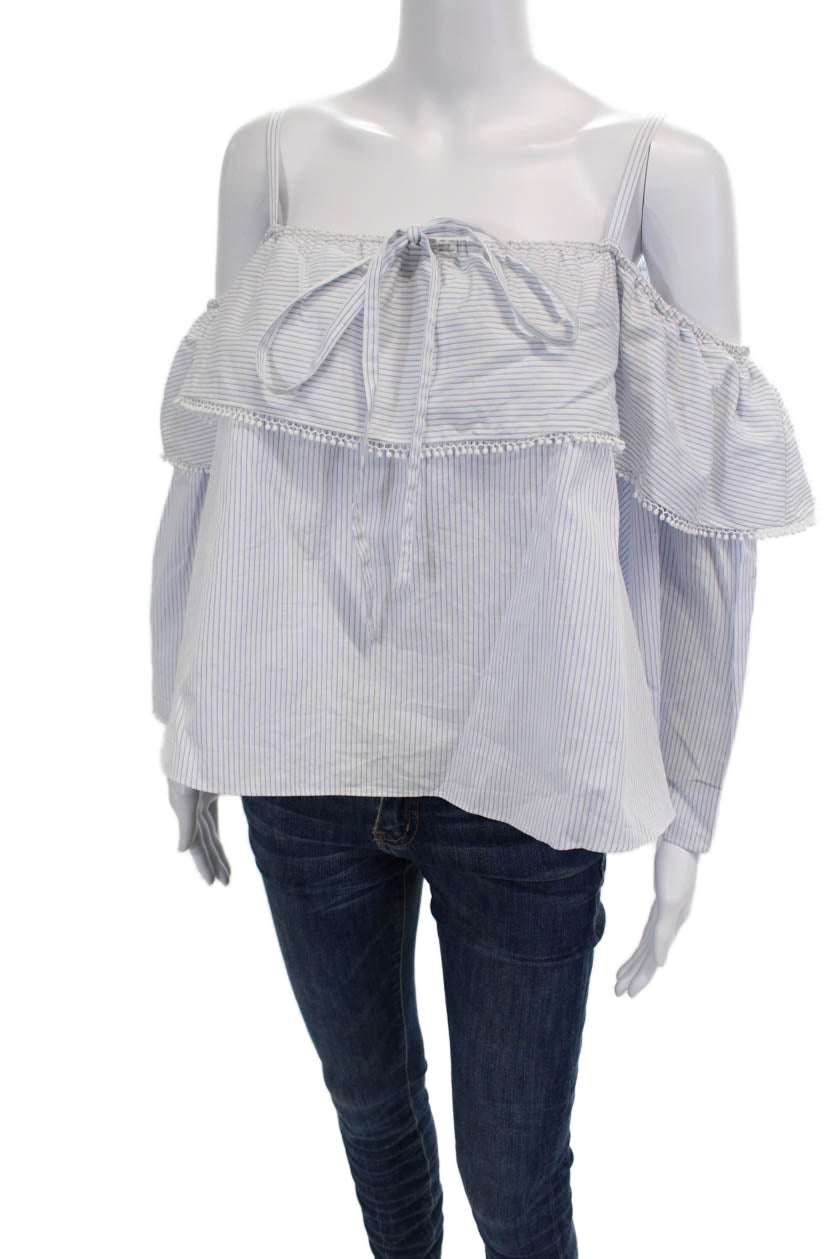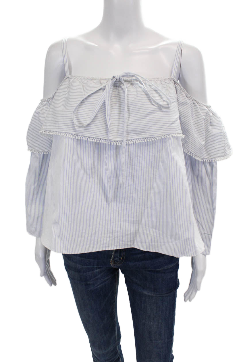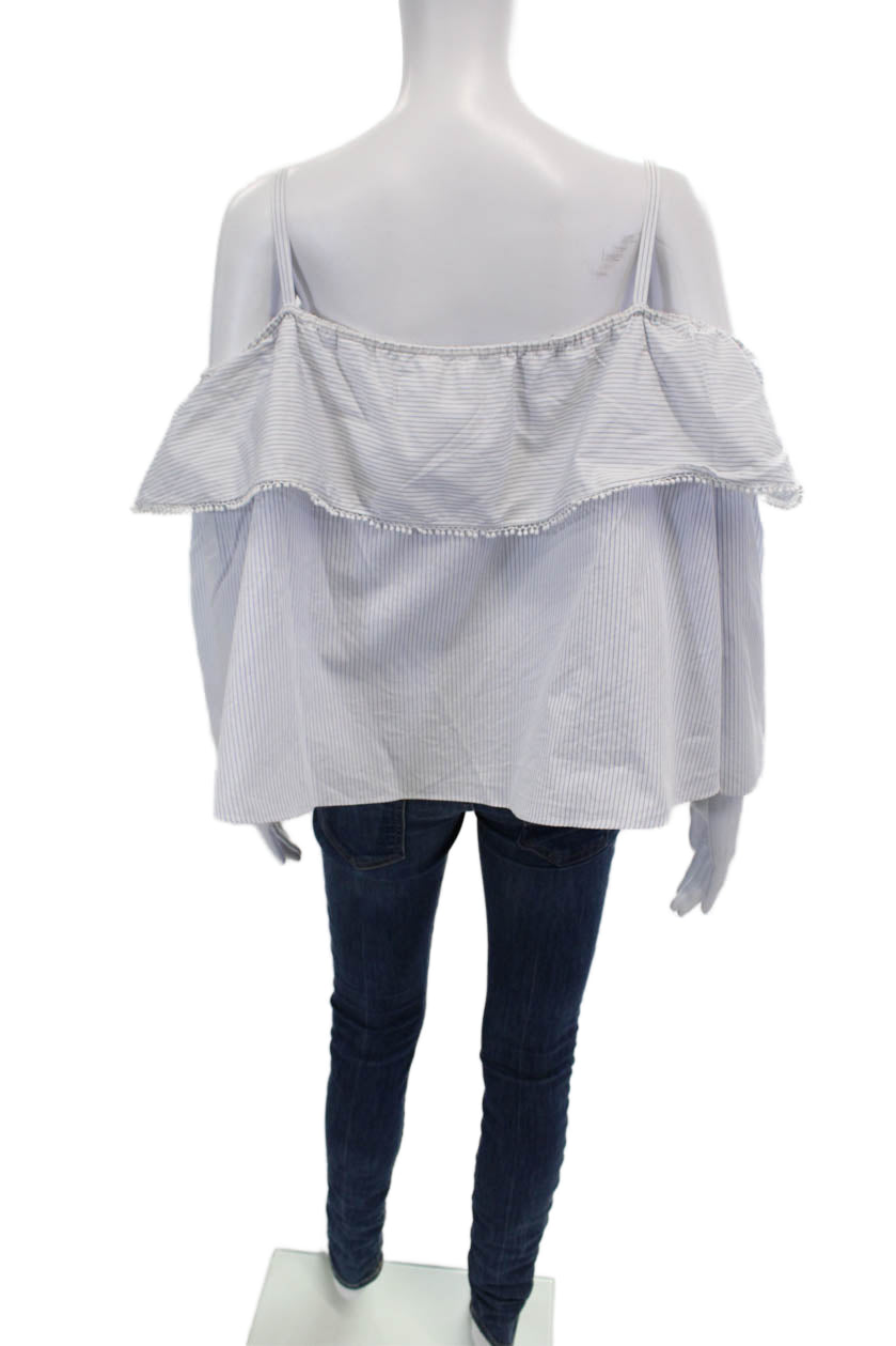 Jonathan Simkhai Womens Cotton Striped Off The Shoulder Blouse Top Blue Size S