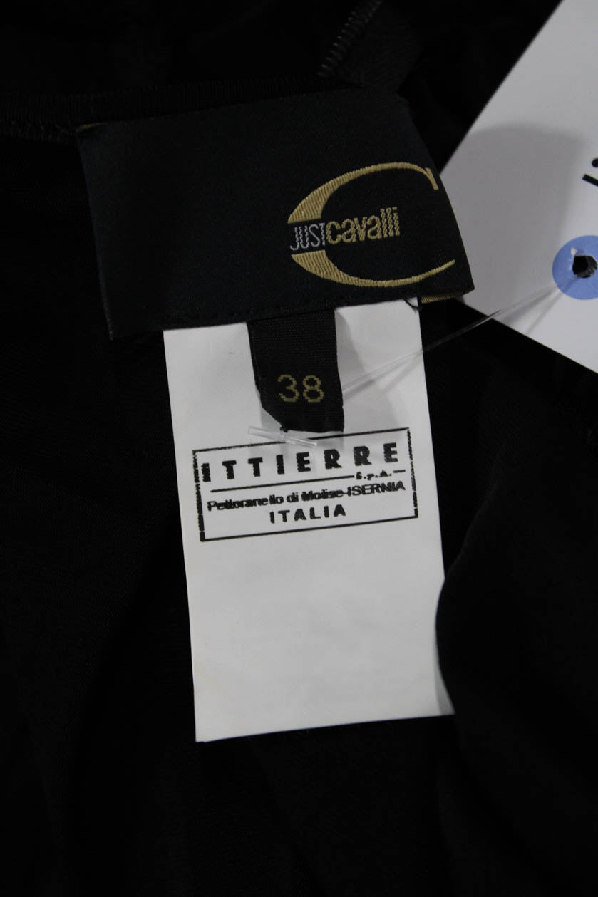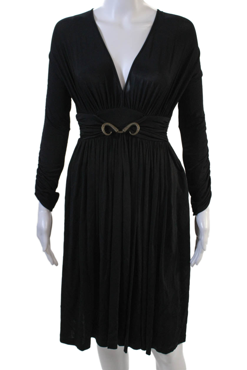 Just Cavalli Womens Stretch Ruched Long Sleeve Knee Length Dress Black Size 38