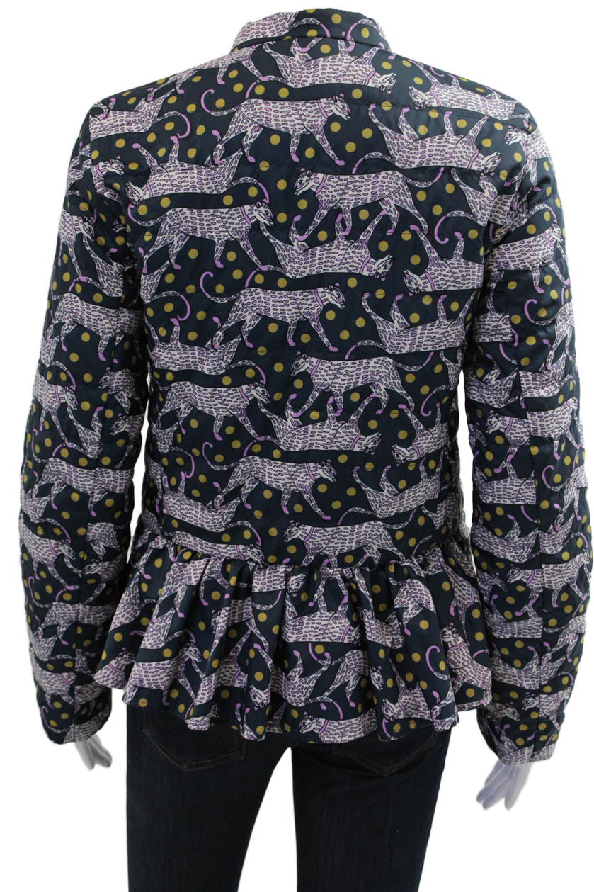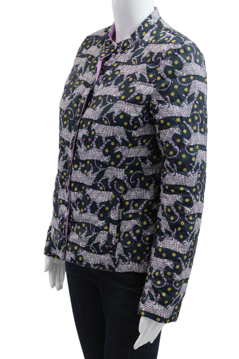 Kate Spade New York Womens Black Puffer Jacket Animal Print Size XS