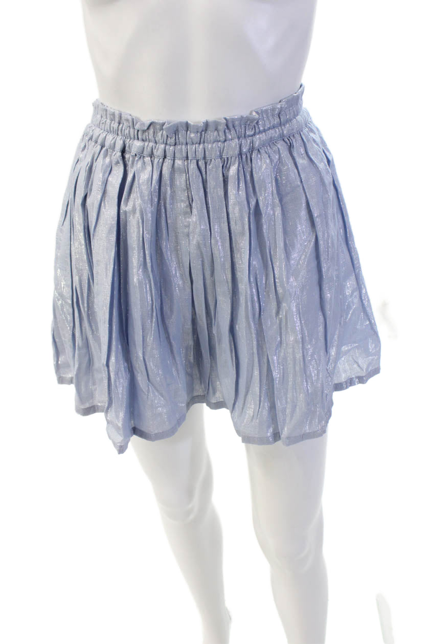 Kondi Womens Cotton High Rise Pleated Lurex Skorts Powder Blue Size L