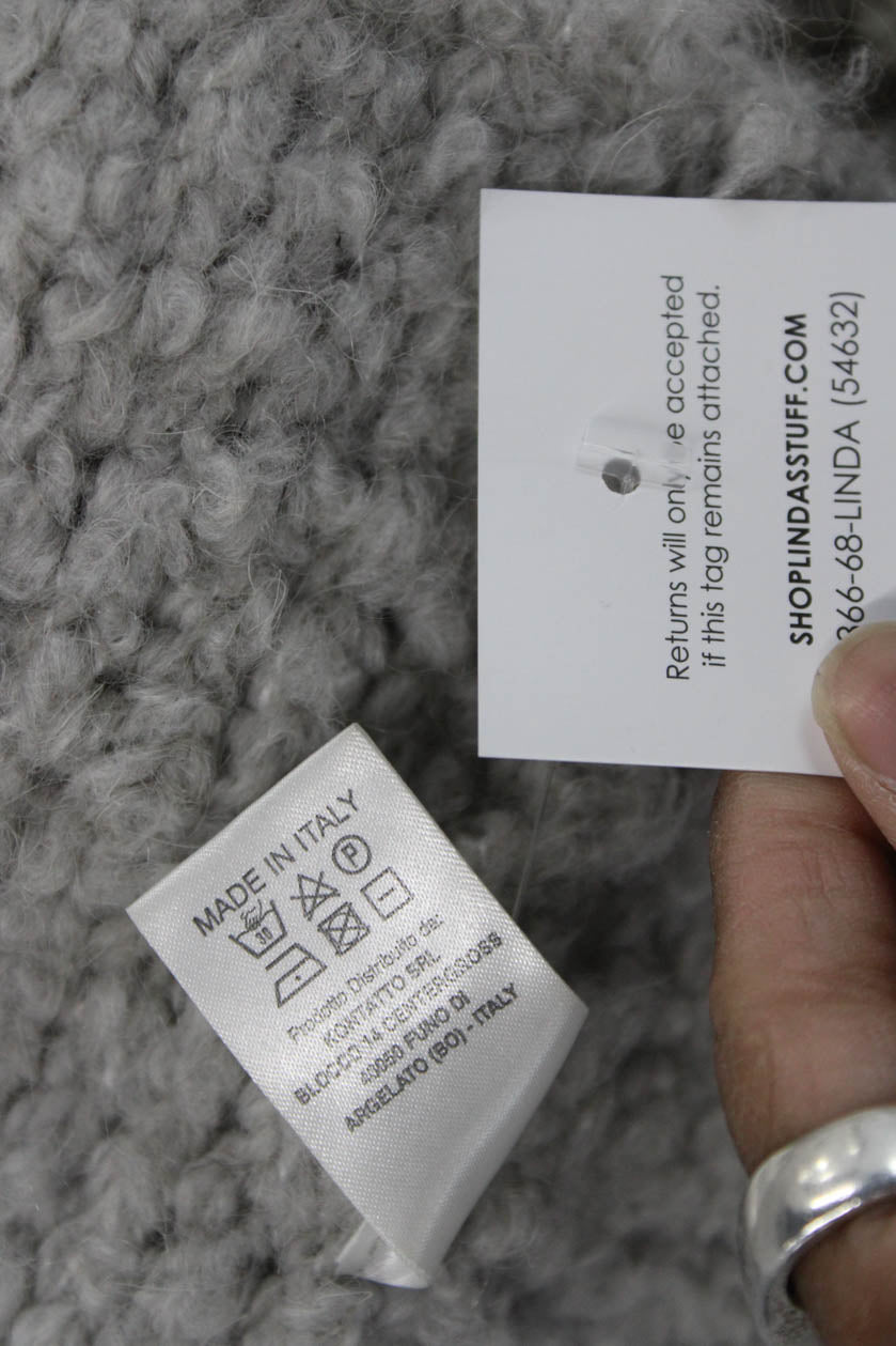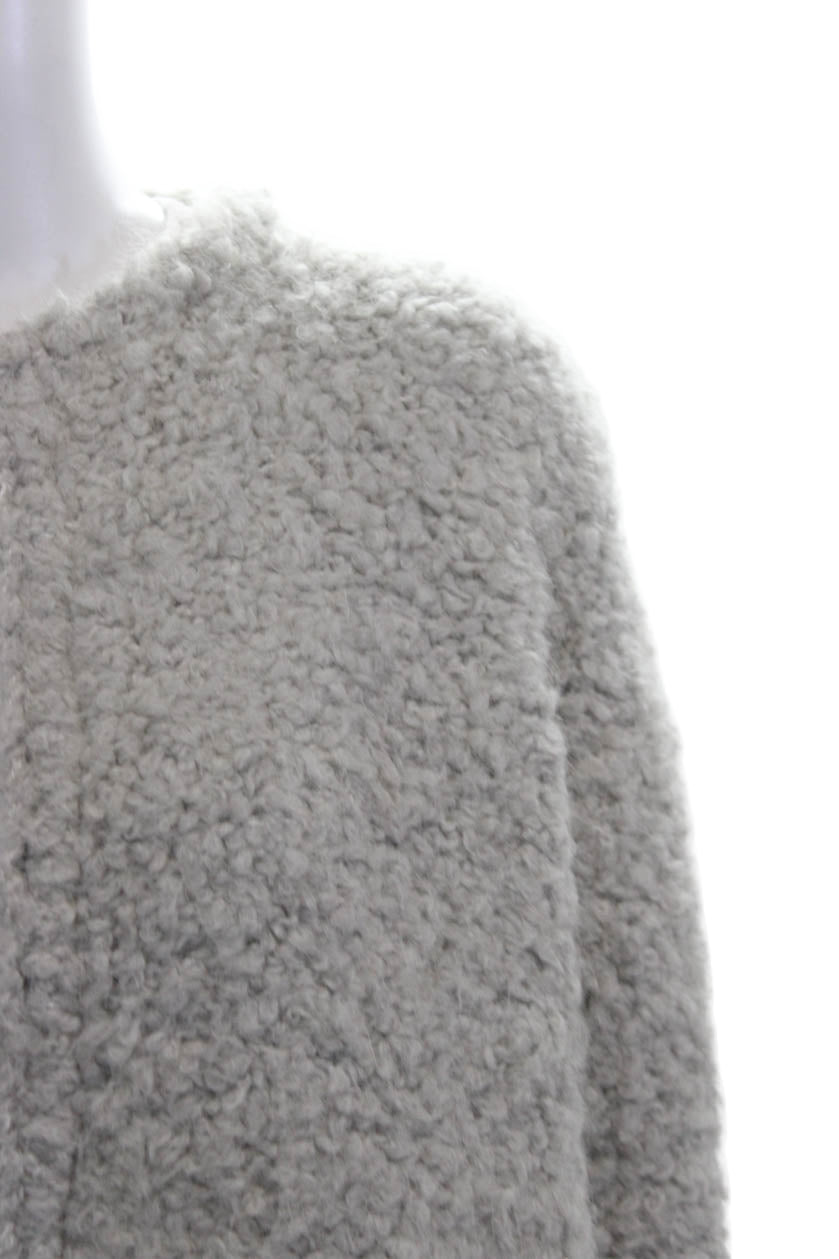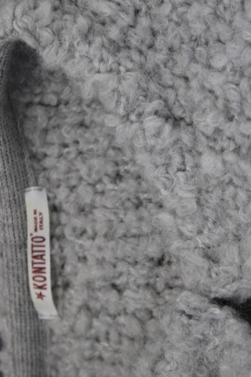 Kontatto Women Gray Crew Neck 3/4 Sleeve Hook & Eye Jacket Size S