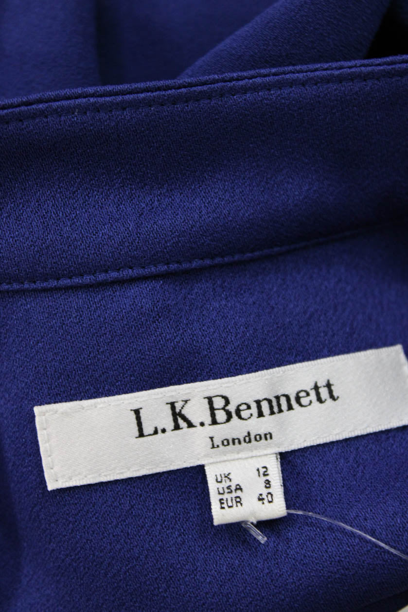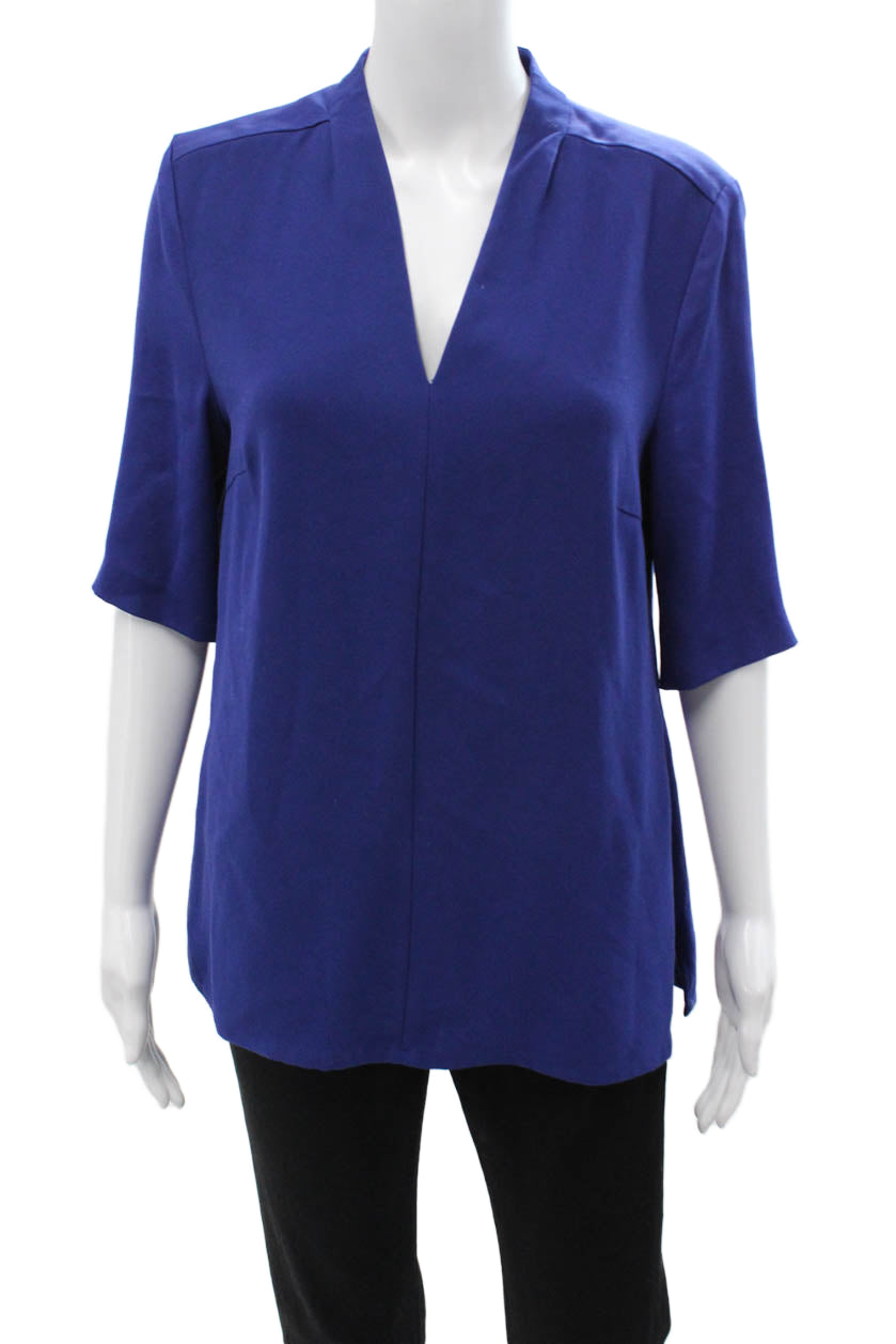 L.K. Bennett Women Blue V-Neck Tunic 3/4 Sleeve Cotton Acrylic Size 8
