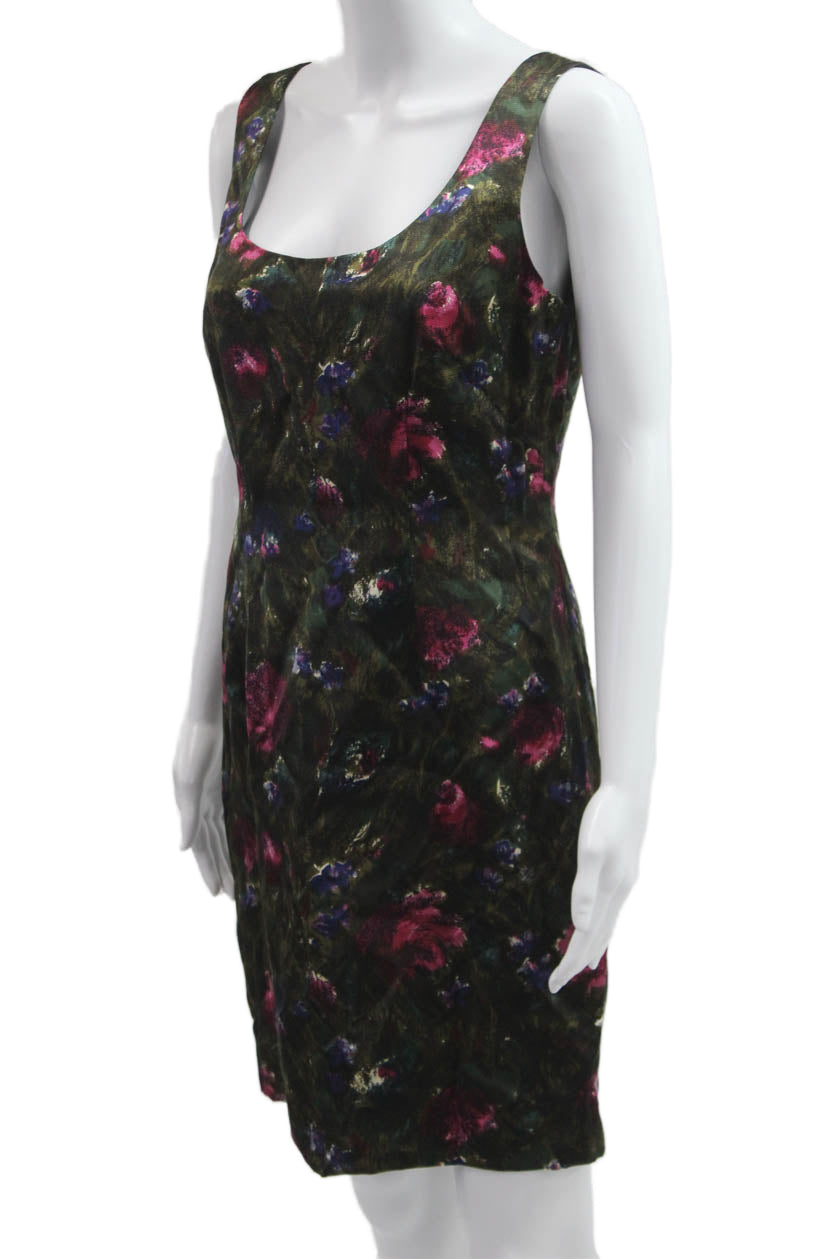 L.K. Bennett Women Sheath Dress Green Floral Sleeveless Size 8