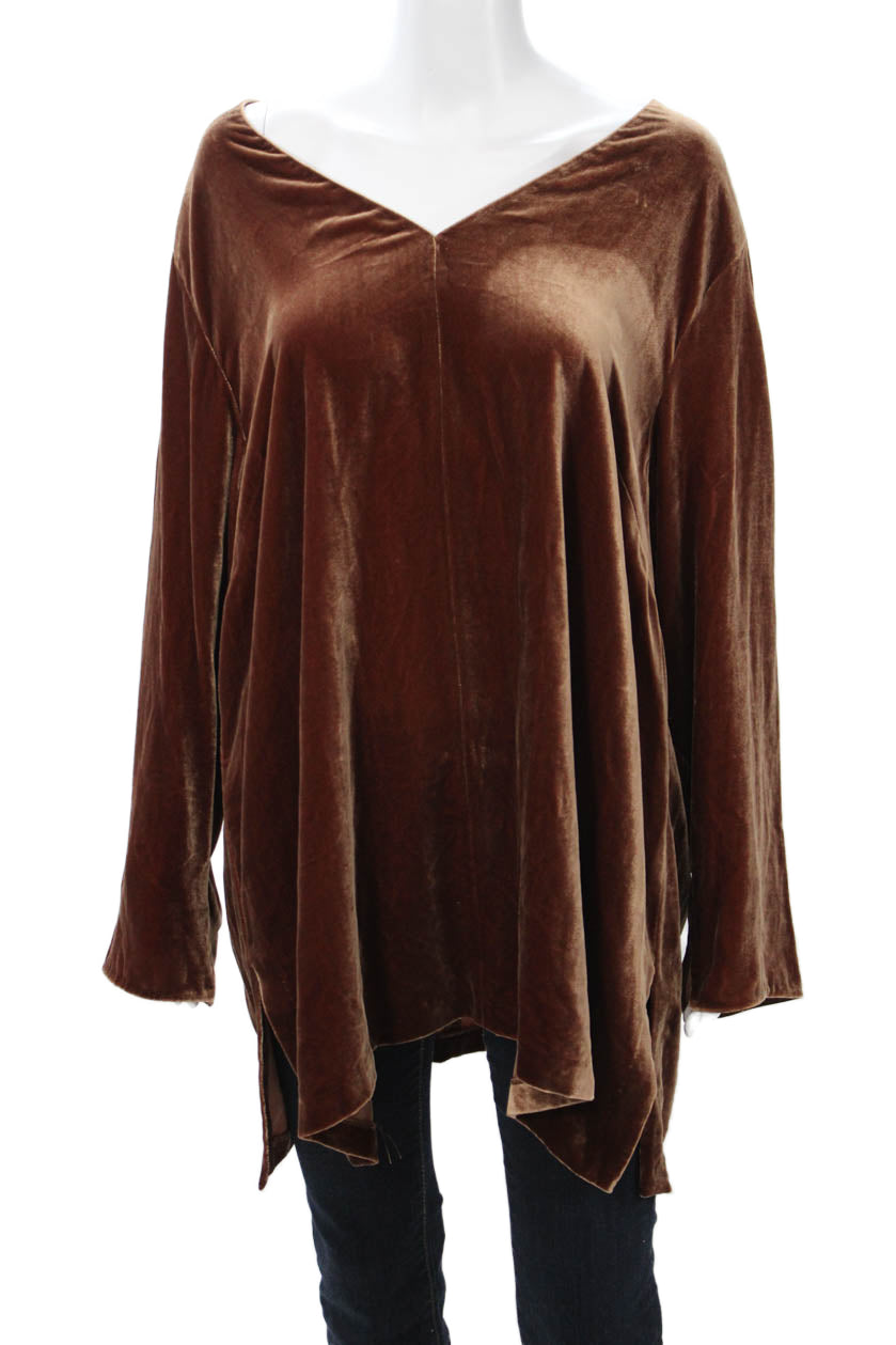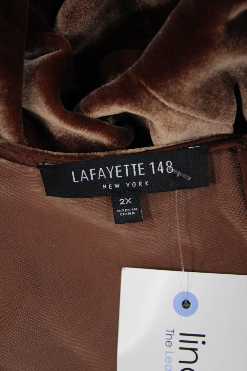 Lafayette 148 New York Womens Brown V-Neck Tunic Long Sleeve Zip Size 2X
